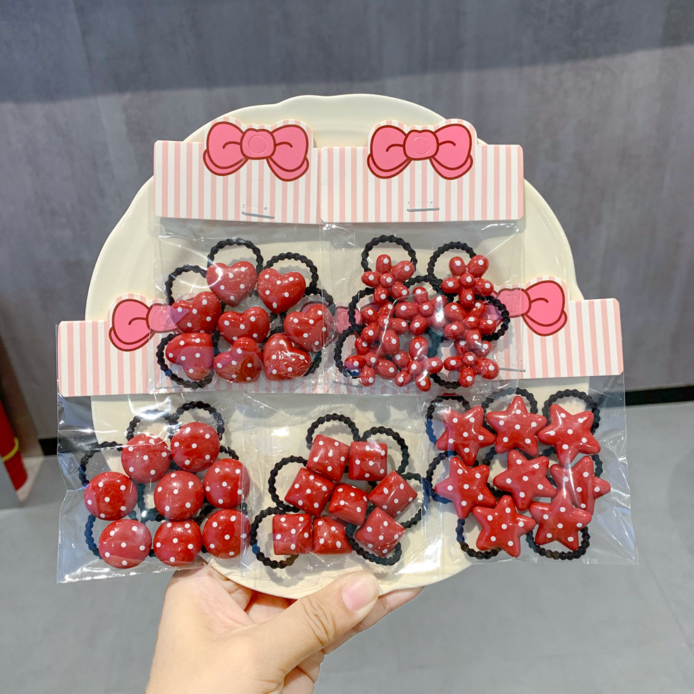 女童红色发圈卡通可爱波点五角星爱心花朵头绳不伤发扎马尾皮筋