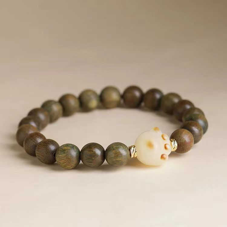 ダ鼎国風文創天然緑檀木猫爪手串単輪祈祷男女友人プレゼントブレスレット手串