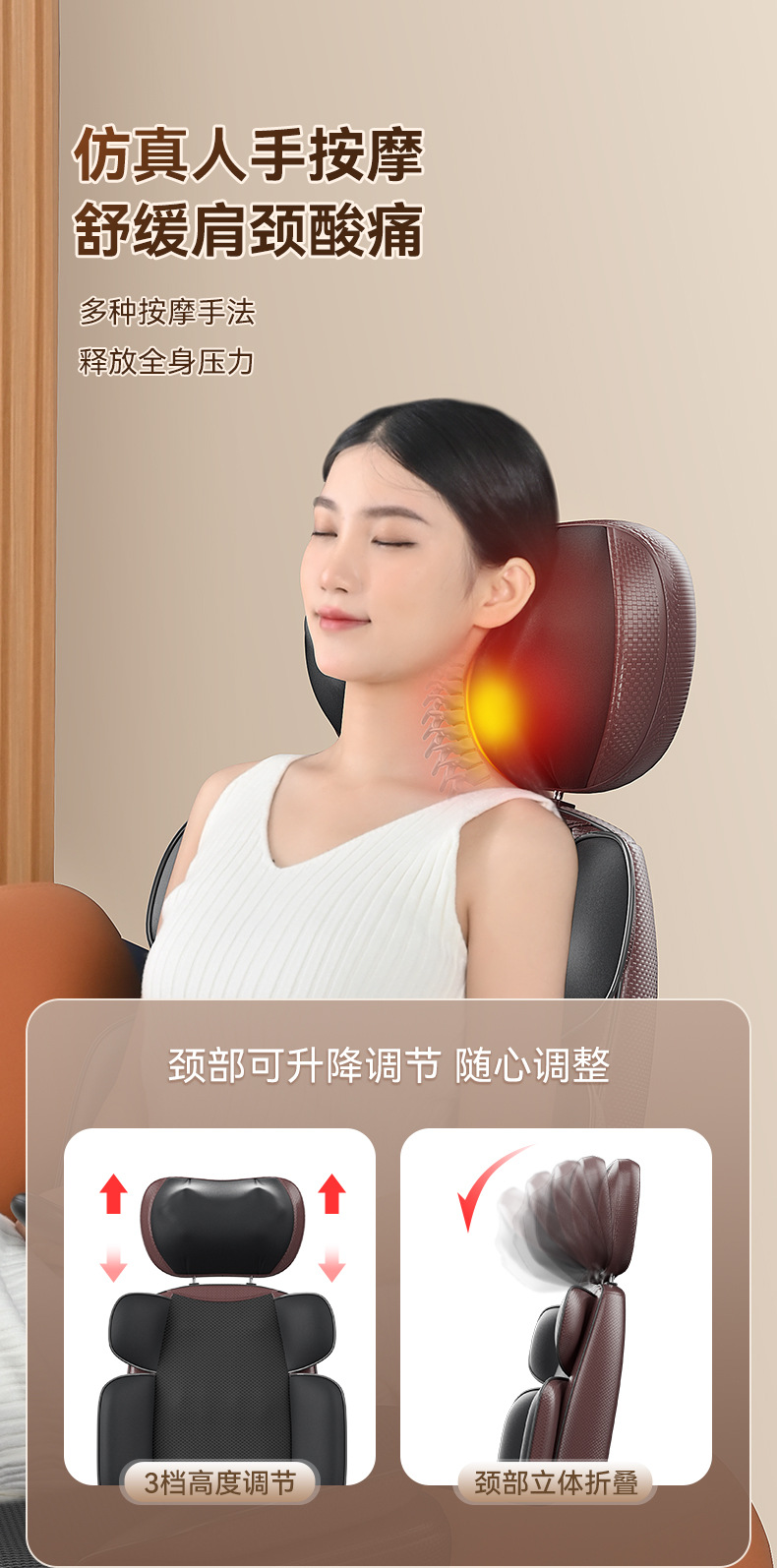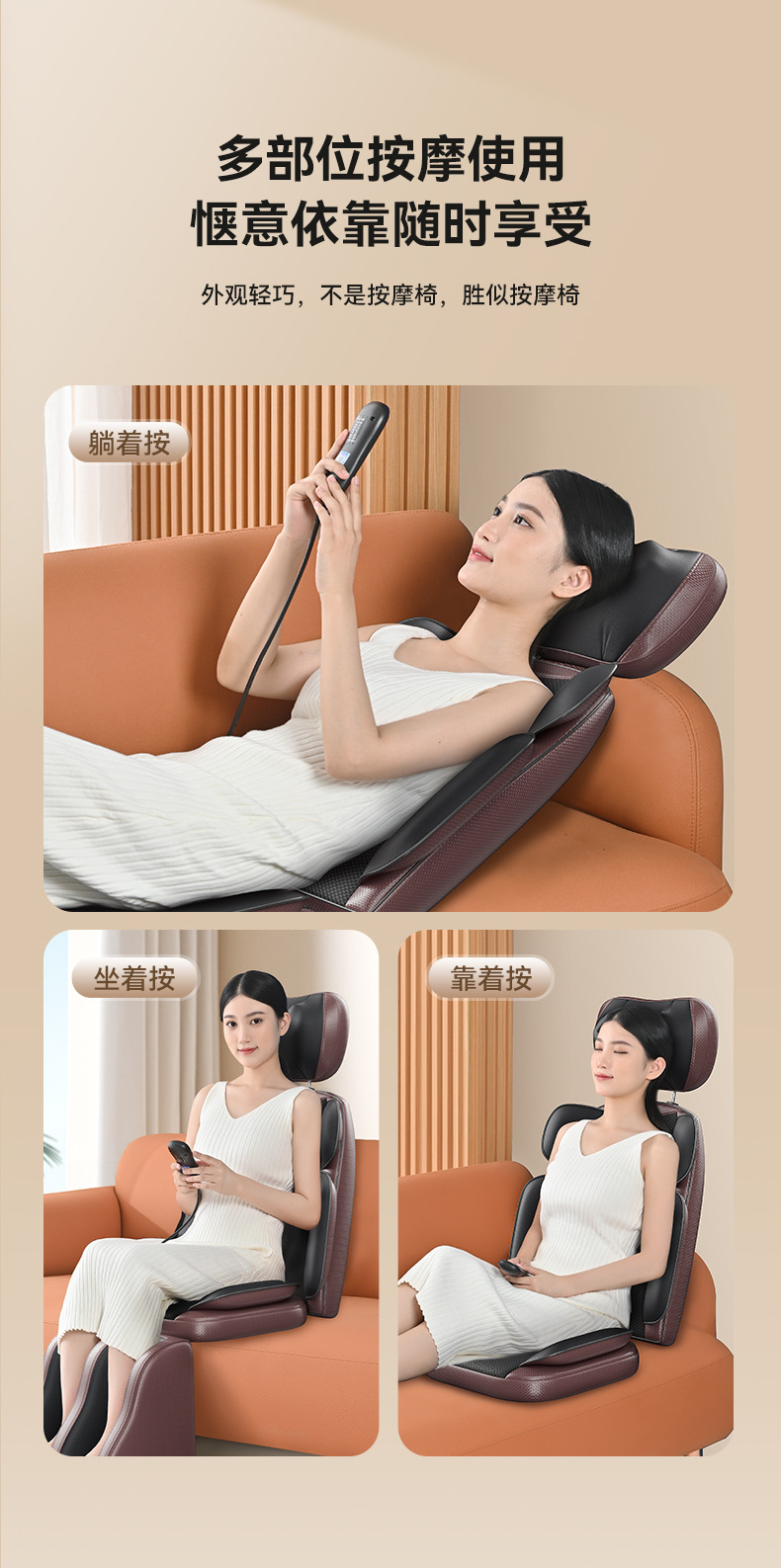 奥克斯按摩靠垫腰部腿部背部热敷肩颈靠垫加热腰椎背揉捏家用按摩