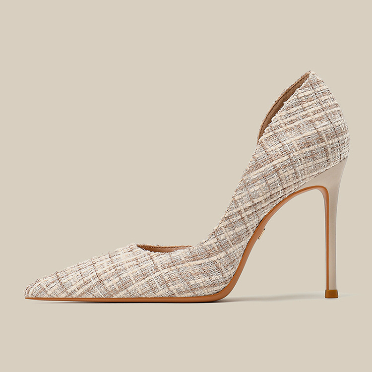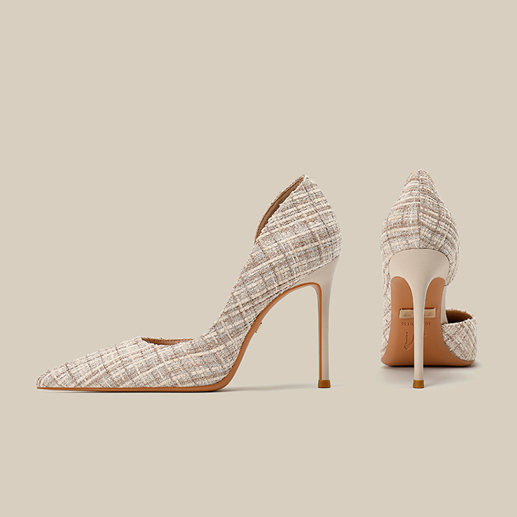 ソフトレザーハイヒール、女性用、細ヒール、ポインテッドトゥ、2025年春夏秋冬新作、万能、ヌードカラー、オフィスシューズ