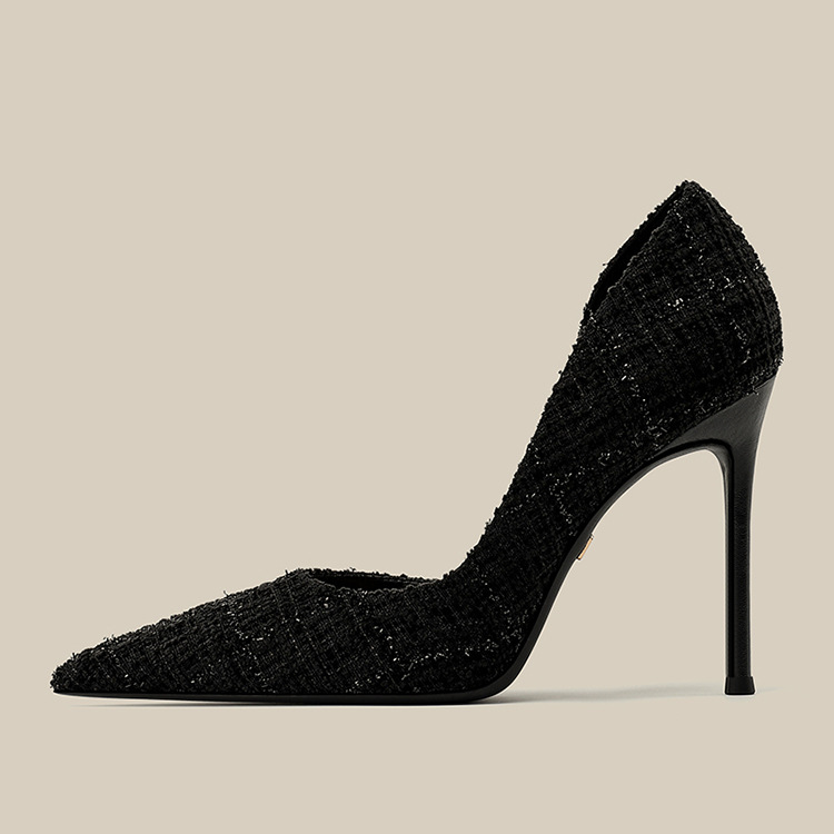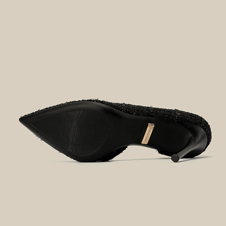 黒のサイドエアハイヒールの新製品2024百合気質名媛の正式面接作業靴は疲れずにスカートに合う