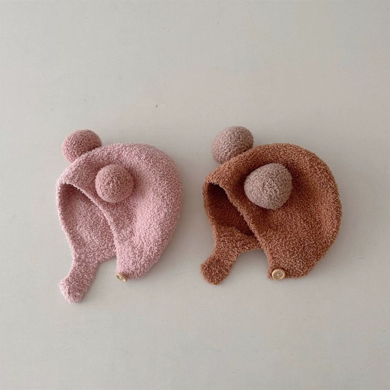 韓国版ins秋冬新型赤ちゃん耳保護帽保温防寒帽快適赤ちゃん双球ソフトモチ包頭帽子潮