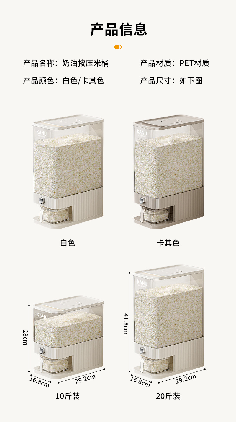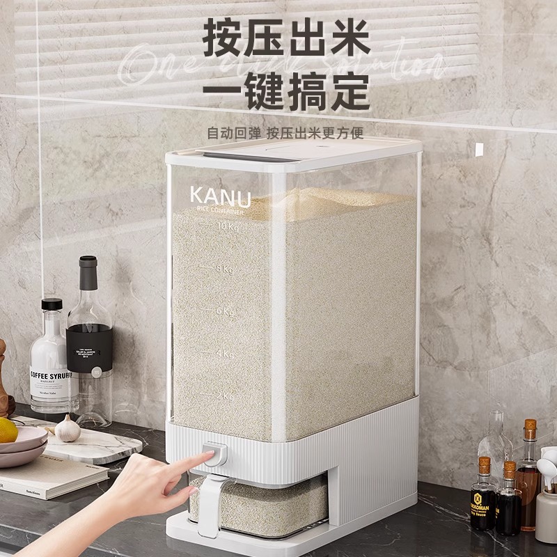 家庭用押し式米びつ 食品グレード キッチン米筒 穀物 防虫 防湿 密閉保存容器 大容量米箱