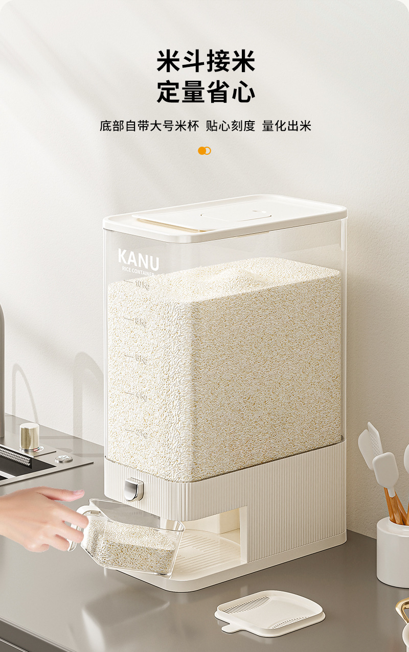 家庭用押し出し式米びつ 食品グレード キッチン米筒 穀物 防虫 防湿 密閉保存容器 大容量米箱