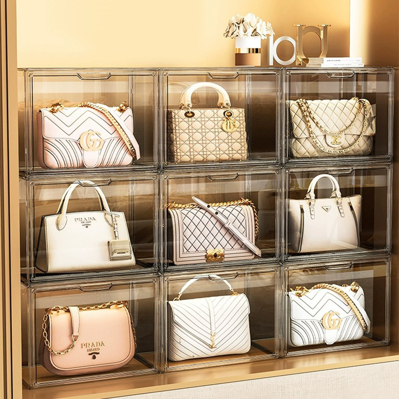 バッグ収納プラスチック高級品透明ディスプレイ収納ボックス収納バッグ収納ラック防塵家庭用ライト高級収納
