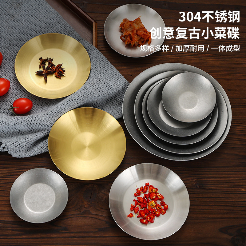 レトロ風ステンレスプレート、和風古風小皿、キムチ味皿、ソース皿、浅皿、創作料理皿、デザート皿