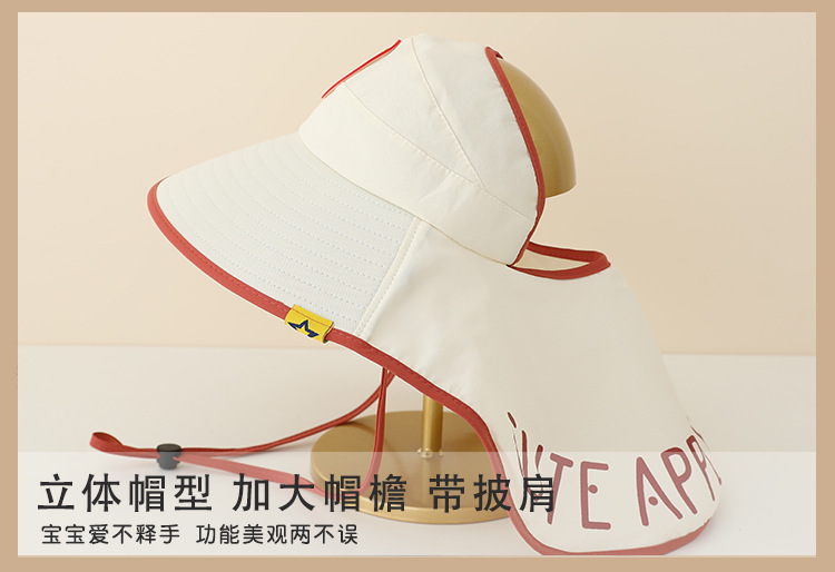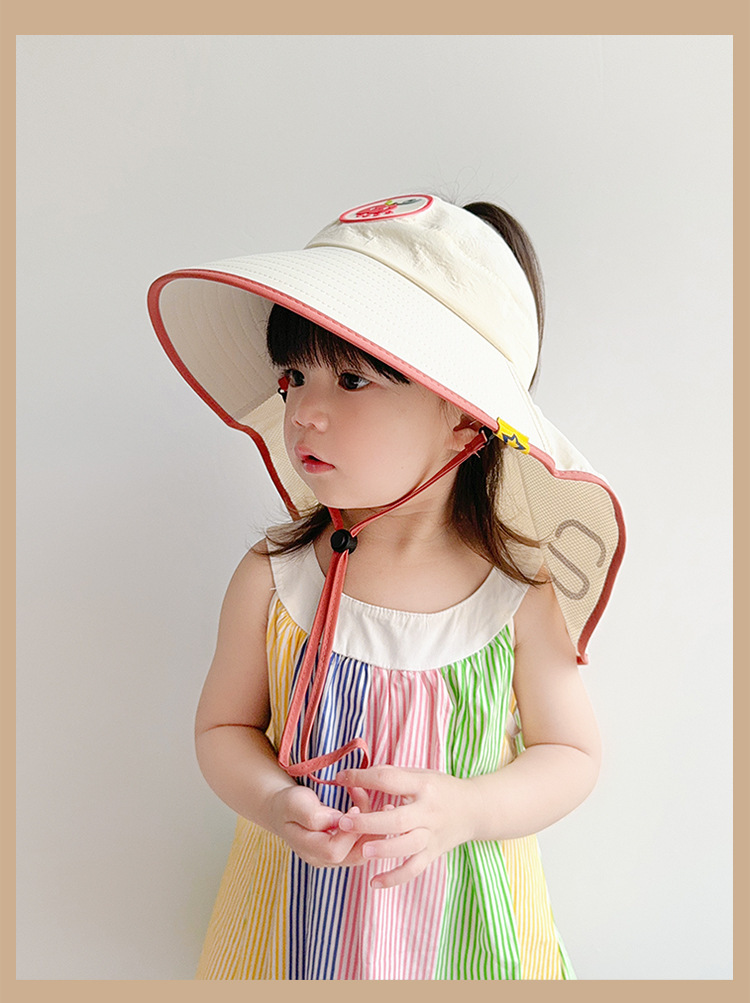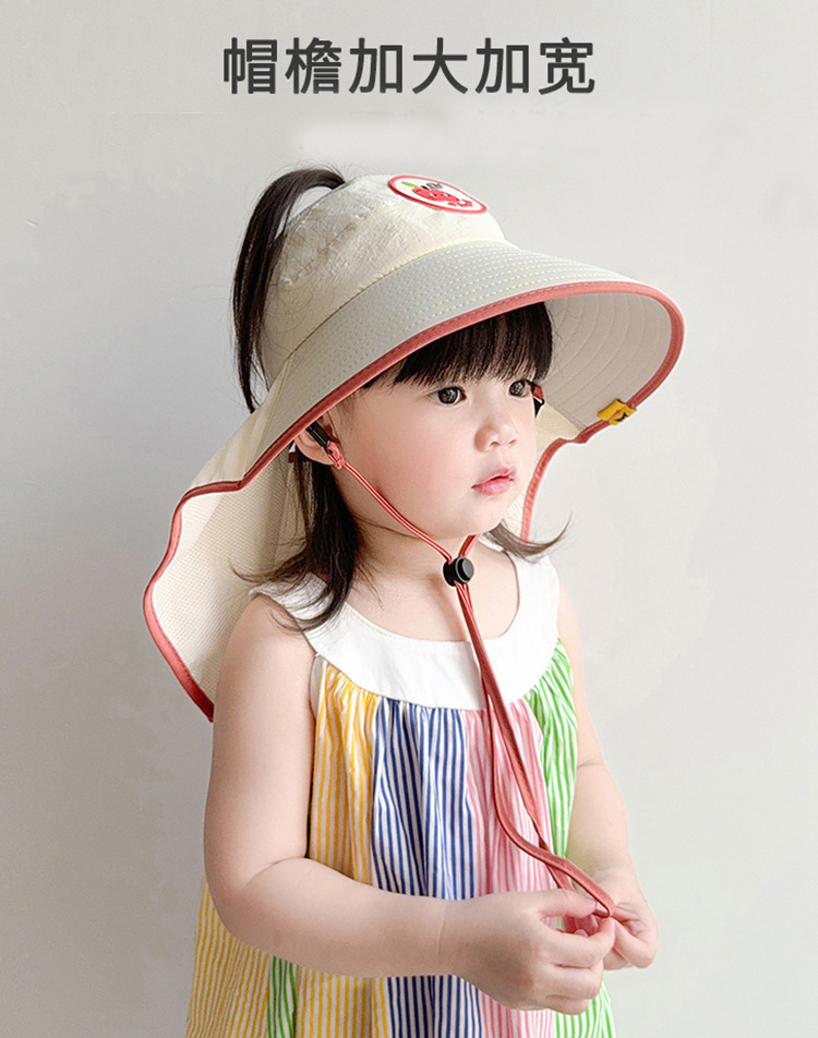 子供用日よけ帽子、夏用日よけショール、首保護、男女兼用ベビー用つば広空頂帽子、卸売、新作、幼児用