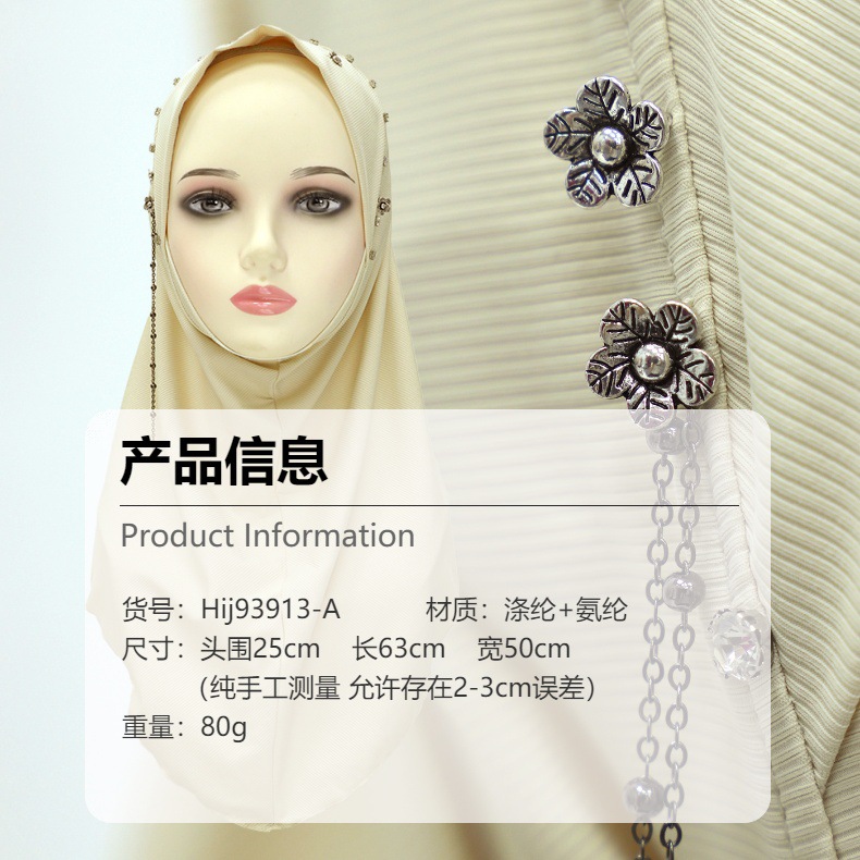 2024夏の新型クロスボーダー釘珠プルオーバーヘッドスカーフの弾力性純色民族フードの現物卸売り