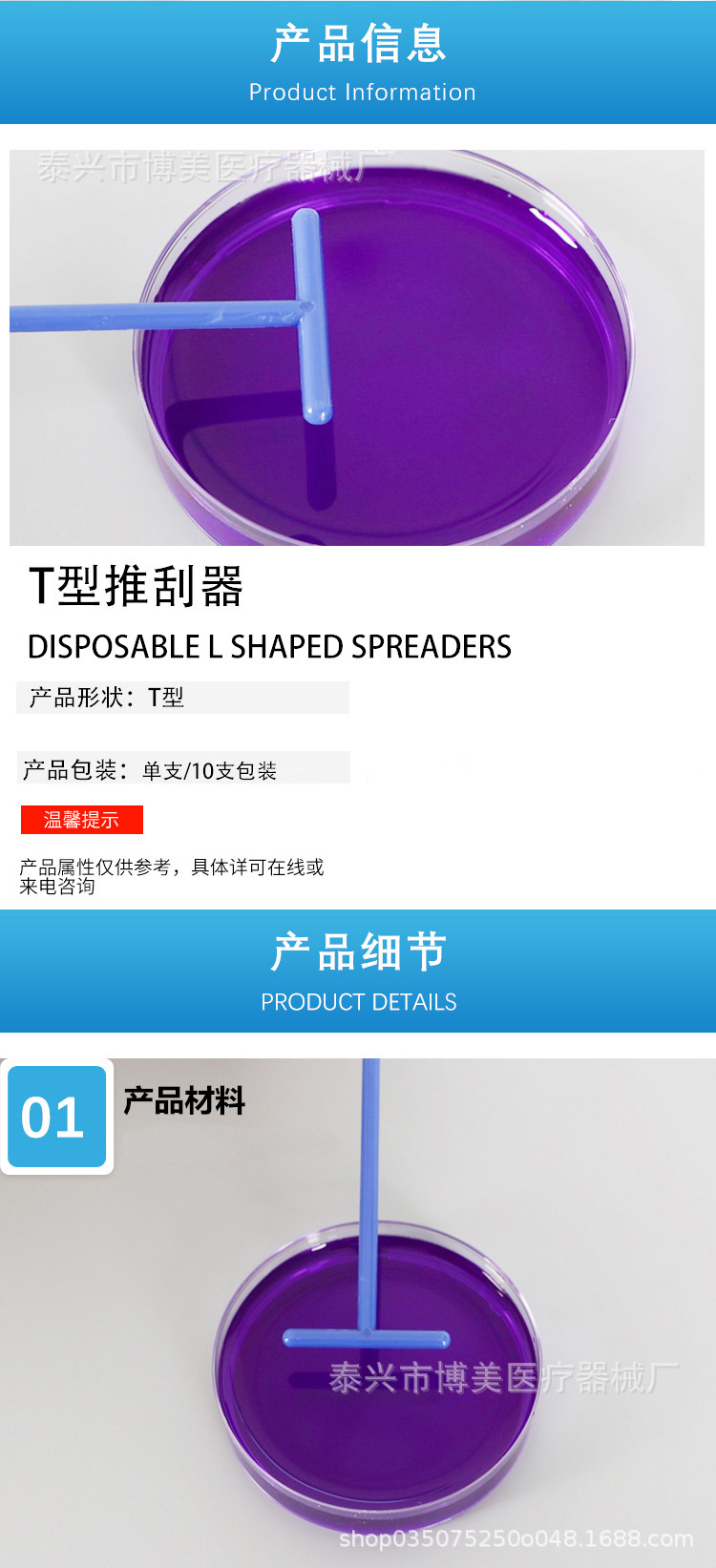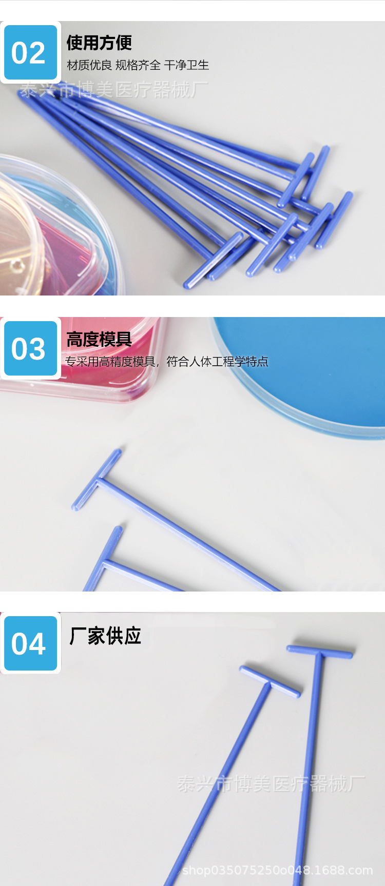メーカーは使い捨てt型細胞ワイパーのプラスチック塗布棒を供給しています。