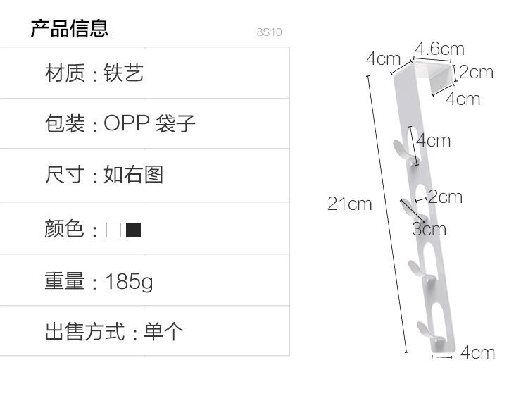 カラー 単列フックブラック,単列フックホワイト,ドアフック黒,ドアフックホワイト