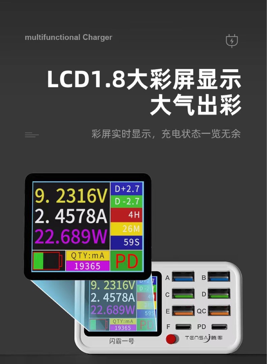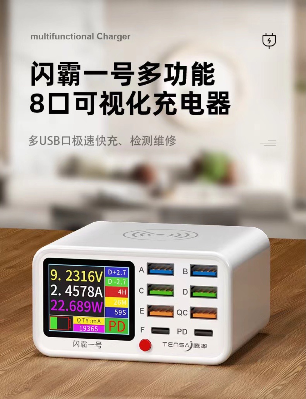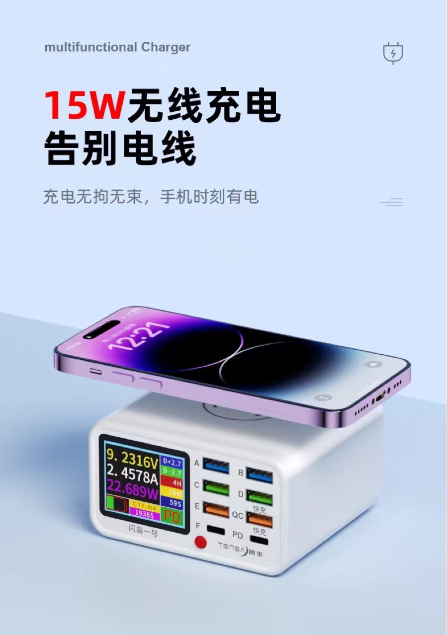 フラッシュ覇1号USB多口充電器QC3.0急速充電PD20W急速充電無線充電知能デジタル充電器