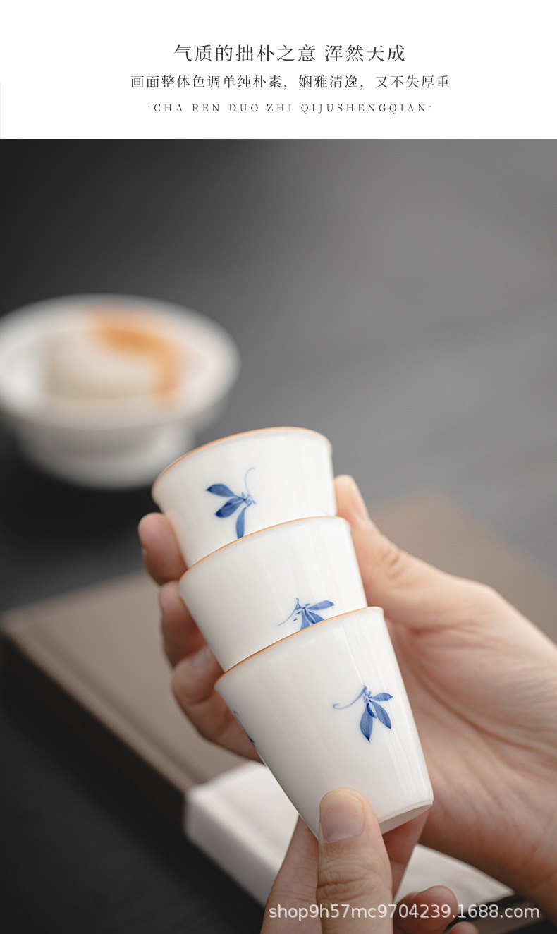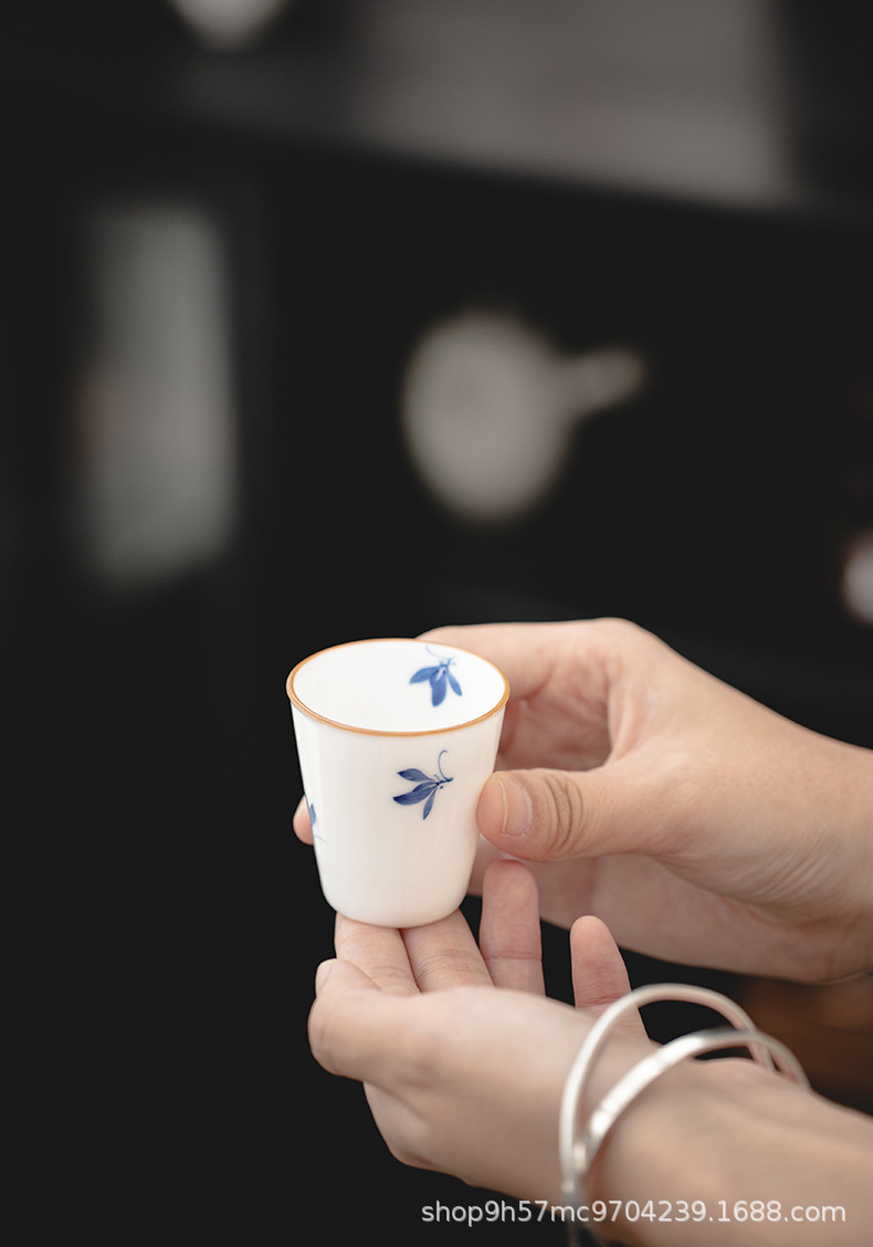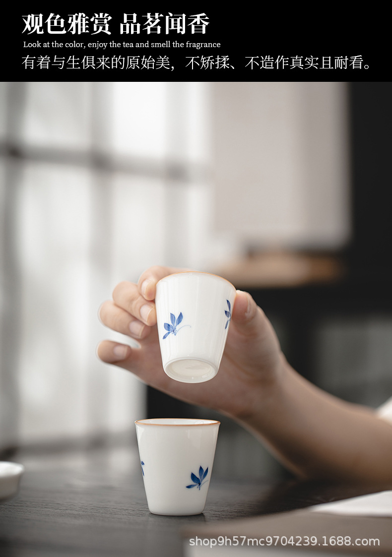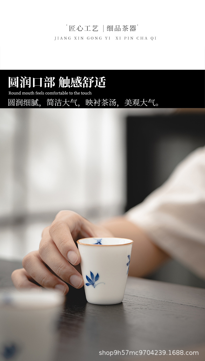 禧マグネシウム手描き蝶蘭白磁器品茗杯斜陽杯家庭用陶磁器お茶カップ個人用シングルカップ