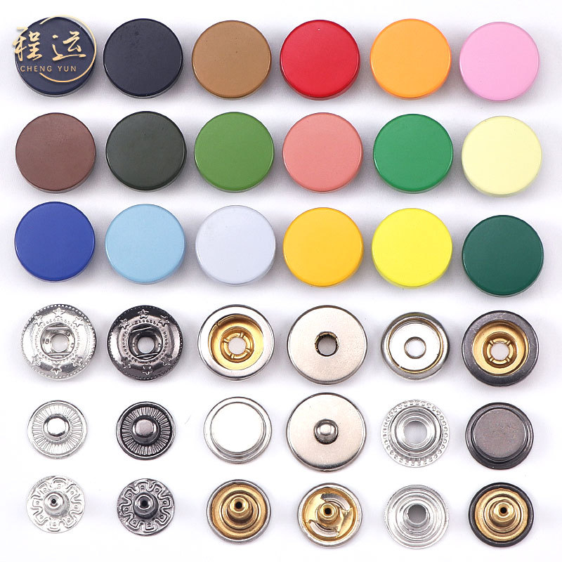 カラフルな 4 バックル金属バックル亜鉛合金スプレー塗装ボタンフラットスナップダウンジャケットボタン在庫卸売