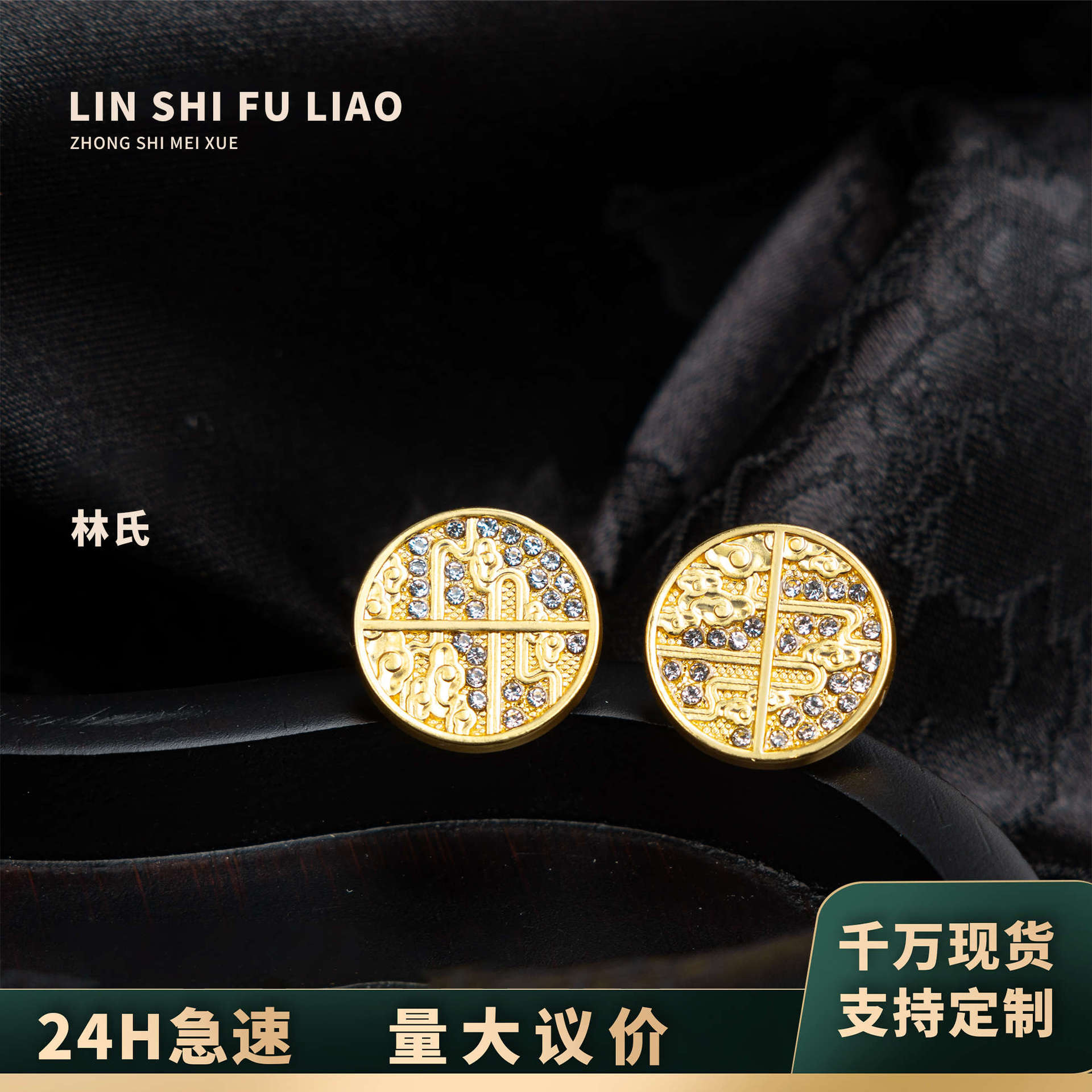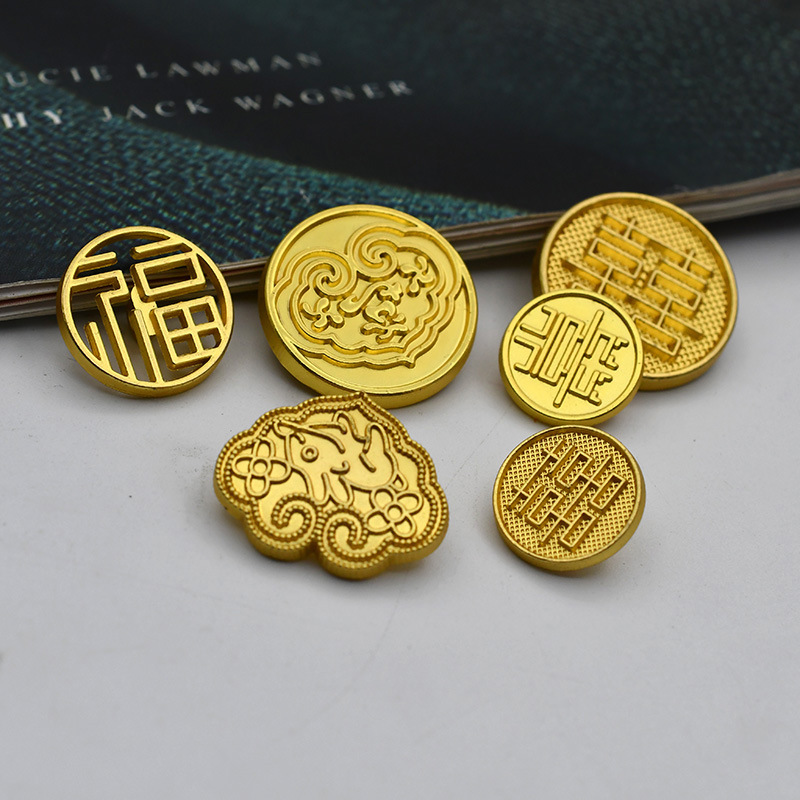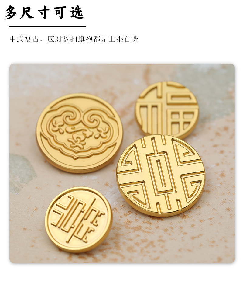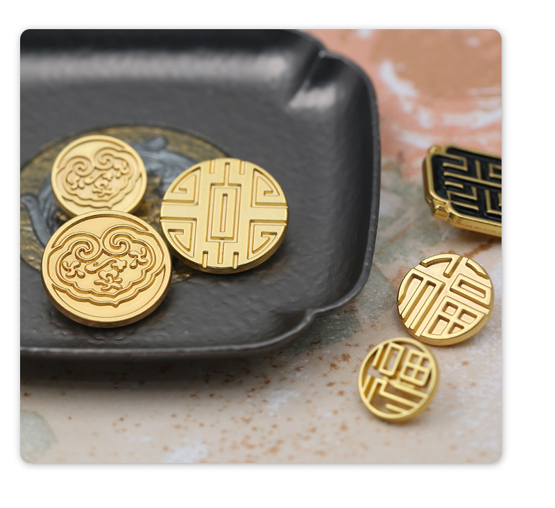 国潮中国式金色福字金属ボタン中国風古風コートコートコート漢服ボタンボタン