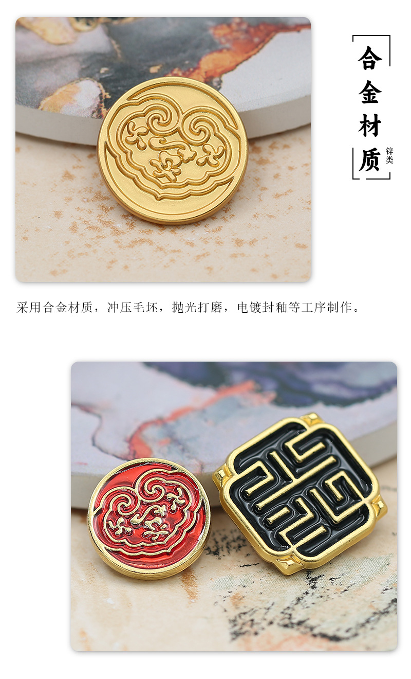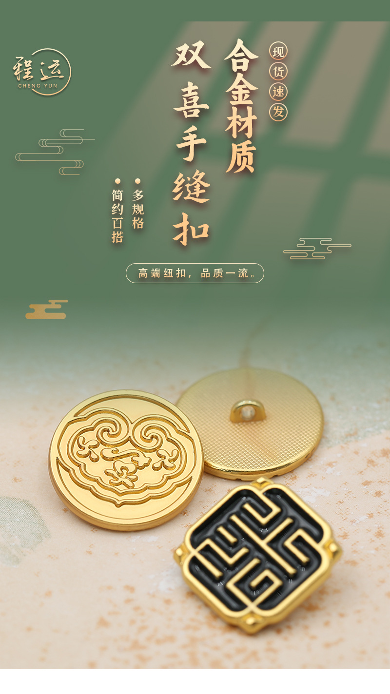 喜字祥雲寿字手縫いボタン古法金点油チャイナドレスボタン金属ボタン中国式服装漢服ボタンボタンボタン