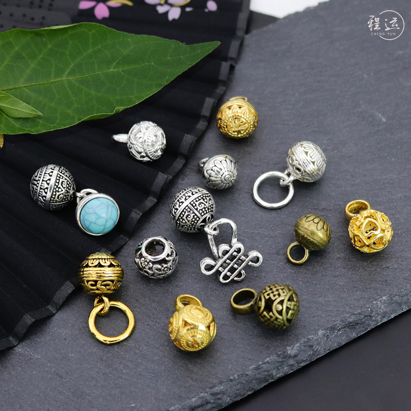 民族風モンゴル長衣銀ボタン苗族装飾ボタン透かし彫り仏珠中空珠黄銅色合金ボタン