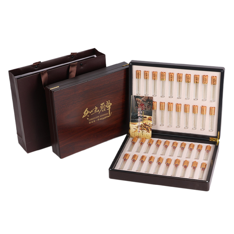 虫草プレゼント包装箱空箱高級10匹セット冬虫夏草ギフトボックス木目手提げ虫草ギフトボックス