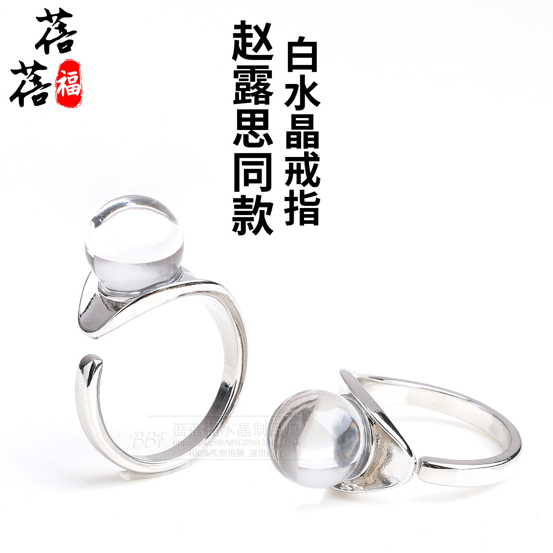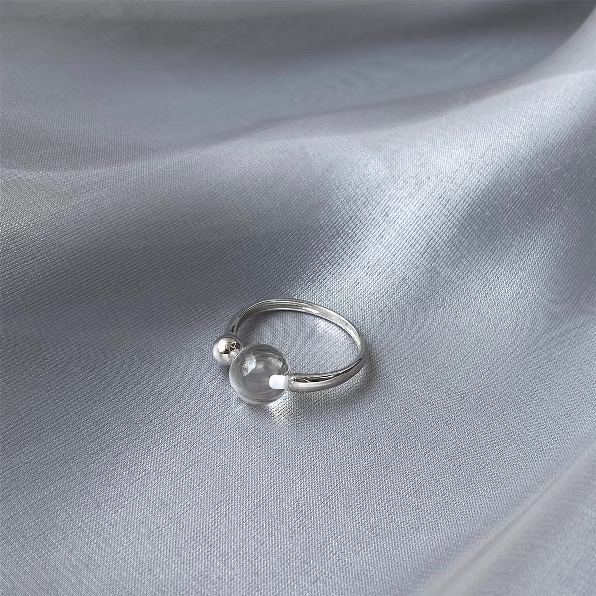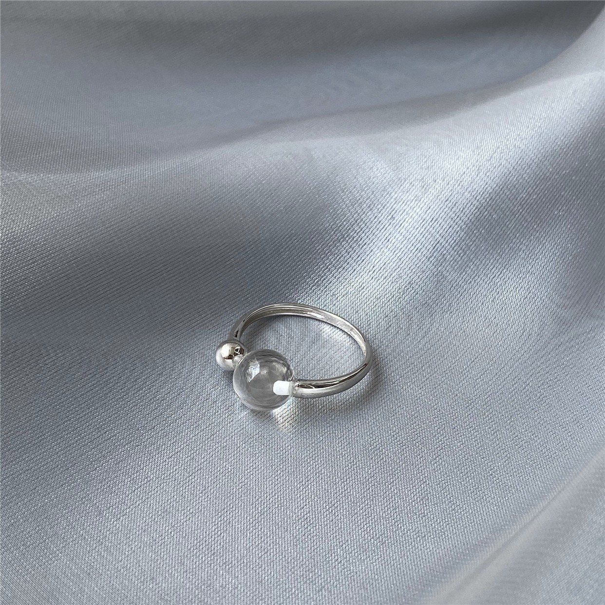赵露思同款白水晶圆珠戒指巴西双无杂质白水晶泡泡珠指环男女款