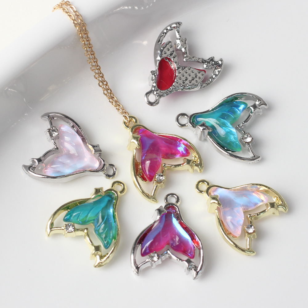 シンプルな合金樹脂皓石モザイク魚尾小ペンダントdiyブレスレットネックレスアクセサリー