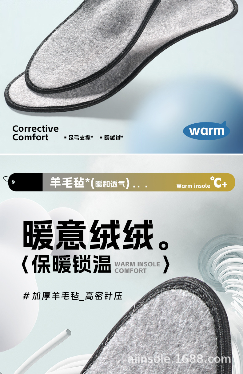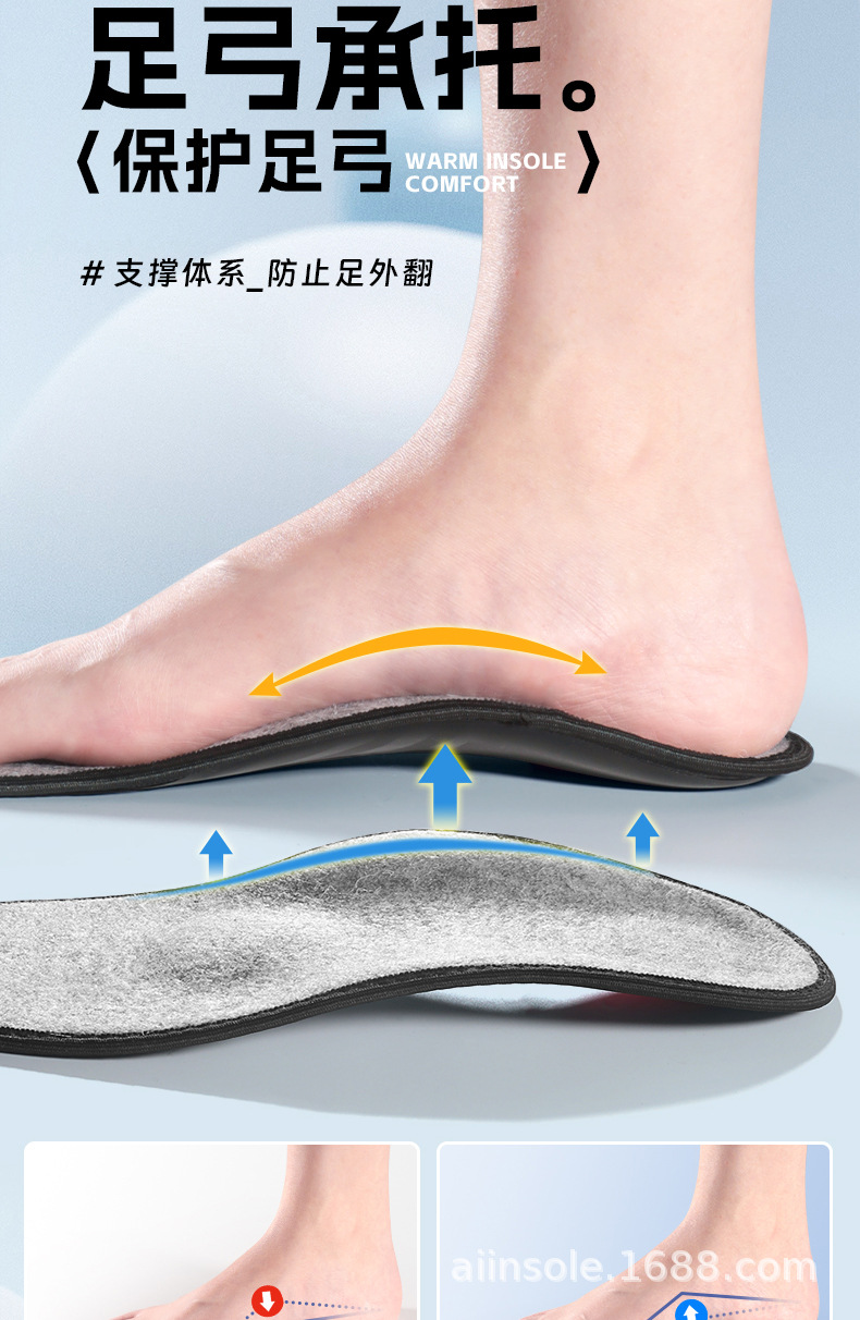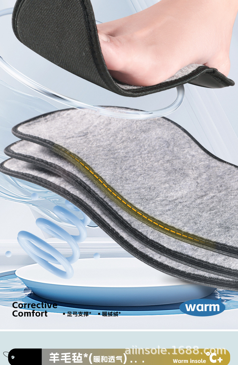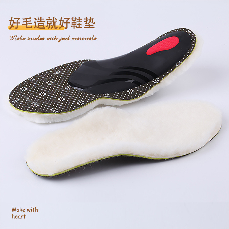 羊毛製扁平足用厚底保温長毛矯正アーチサポートインソール、衝撃吸収秋冬モデル、海外貿易卸売