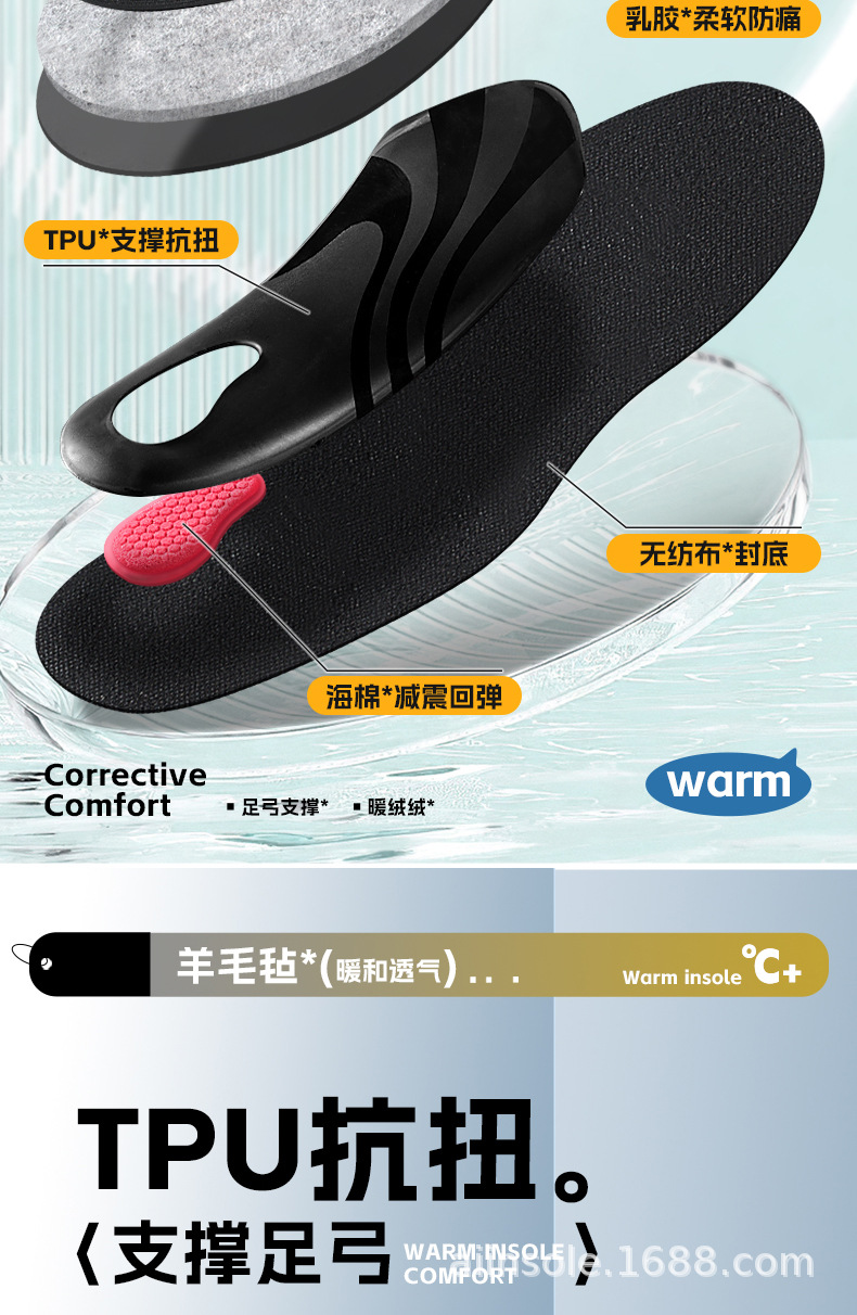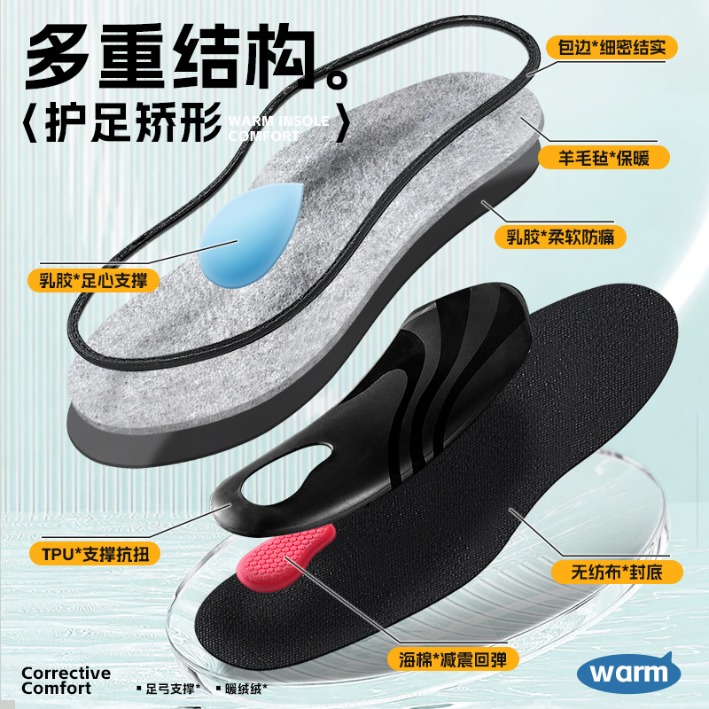 新款羊毛毡乳胶运动鞋垫TPU足弓支撑矫正垫男女休闲减震跑步防臭