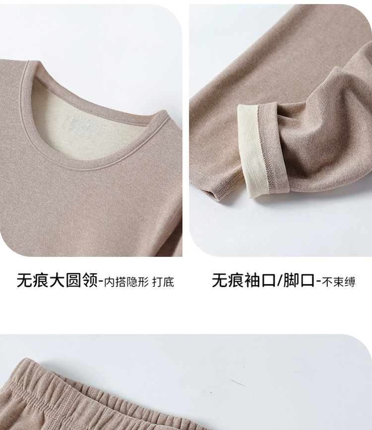 徳絨毛保温スーツ冬の新型女性の丸首とベルベットの厚手防寒カジュアルシャツ秋衣秋ズボン