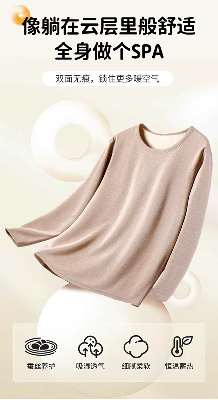 カシミヤシルクデロン保温下着 男女兼用 厚手裏起毛 超厚防寒 丸首綿毛衣 秋服