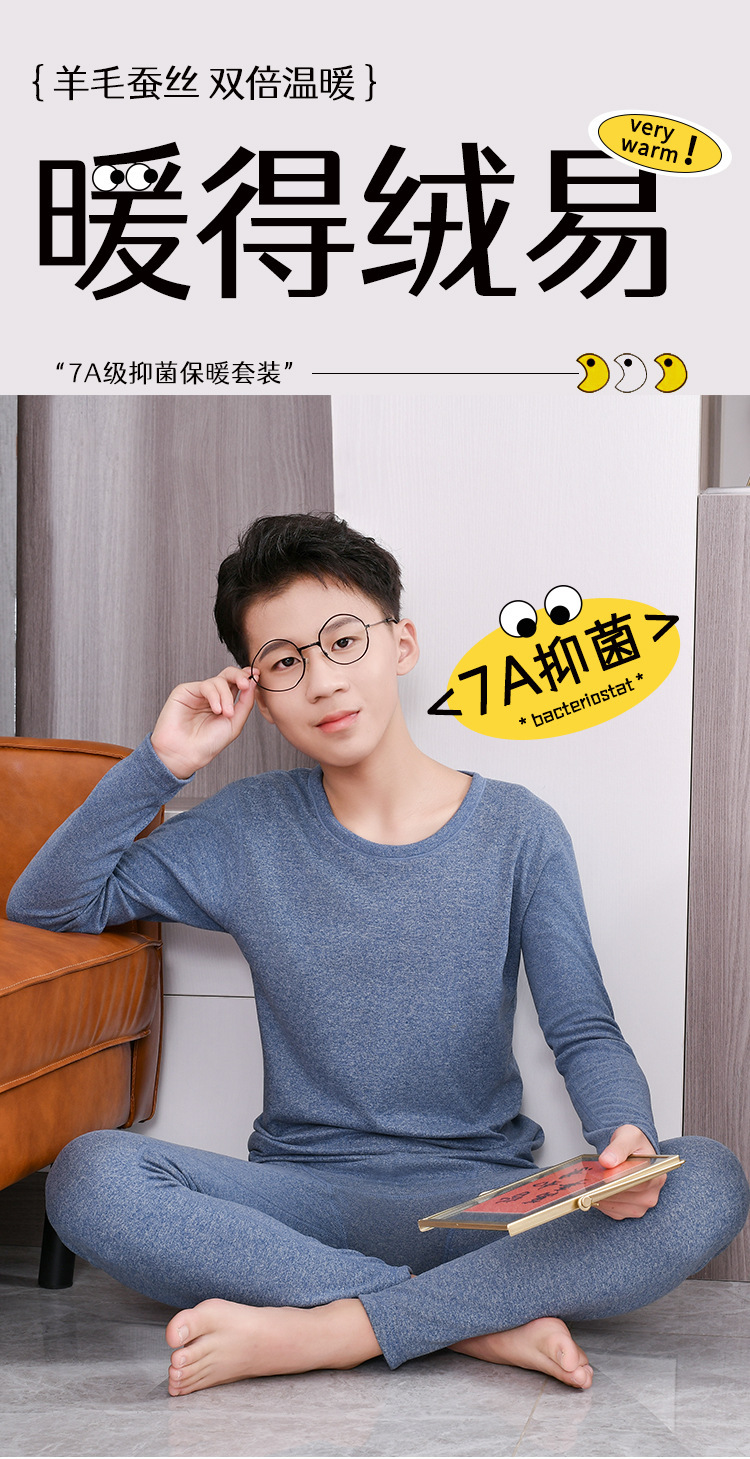 青少年用保温下着セット・デロン素材 男の子 中学生 高校生 秋服 冬用インナー