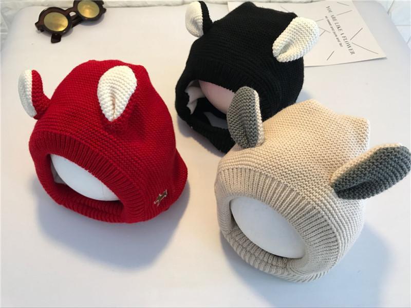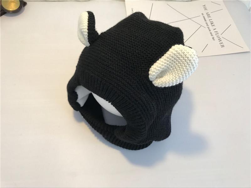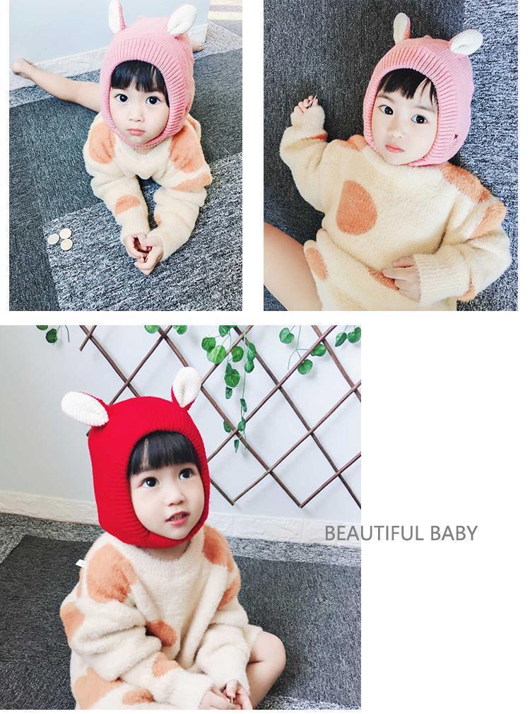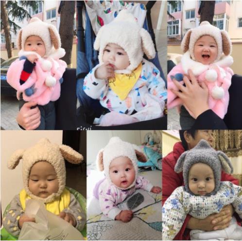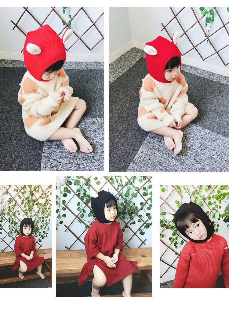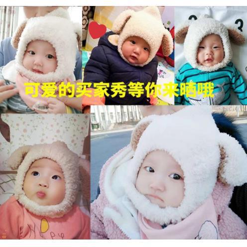 ベビー帽子秋冬可爱い毛玉プルオーバーキャップ乳幼児ニット毛糸厚い耳当て男女超萌え潮