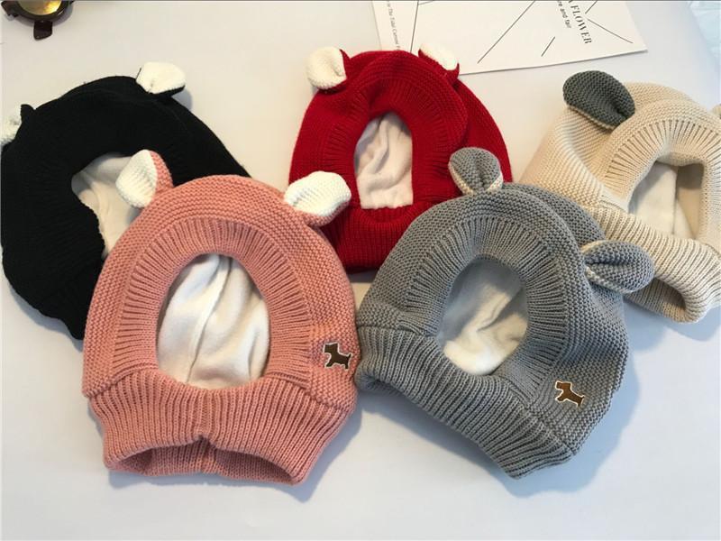 子犬の帽子の子供の秋冬のかわいい耳の毛糸の帽子は自転車に乗ります。