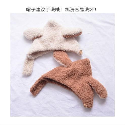 韓国版ins秋冬新型赤ちゃん耳保護帽保温防寒帽快適赤ちゃん双球ソフトモチ包頭帽子潮