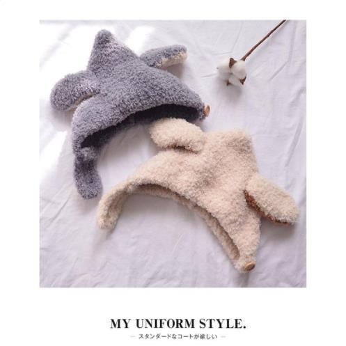 新しい韓国風リボン帽子、かわいい動物柄のおしゃれで暖かいぬいぐるみ帽子、秋冬用厚手女性用卸売