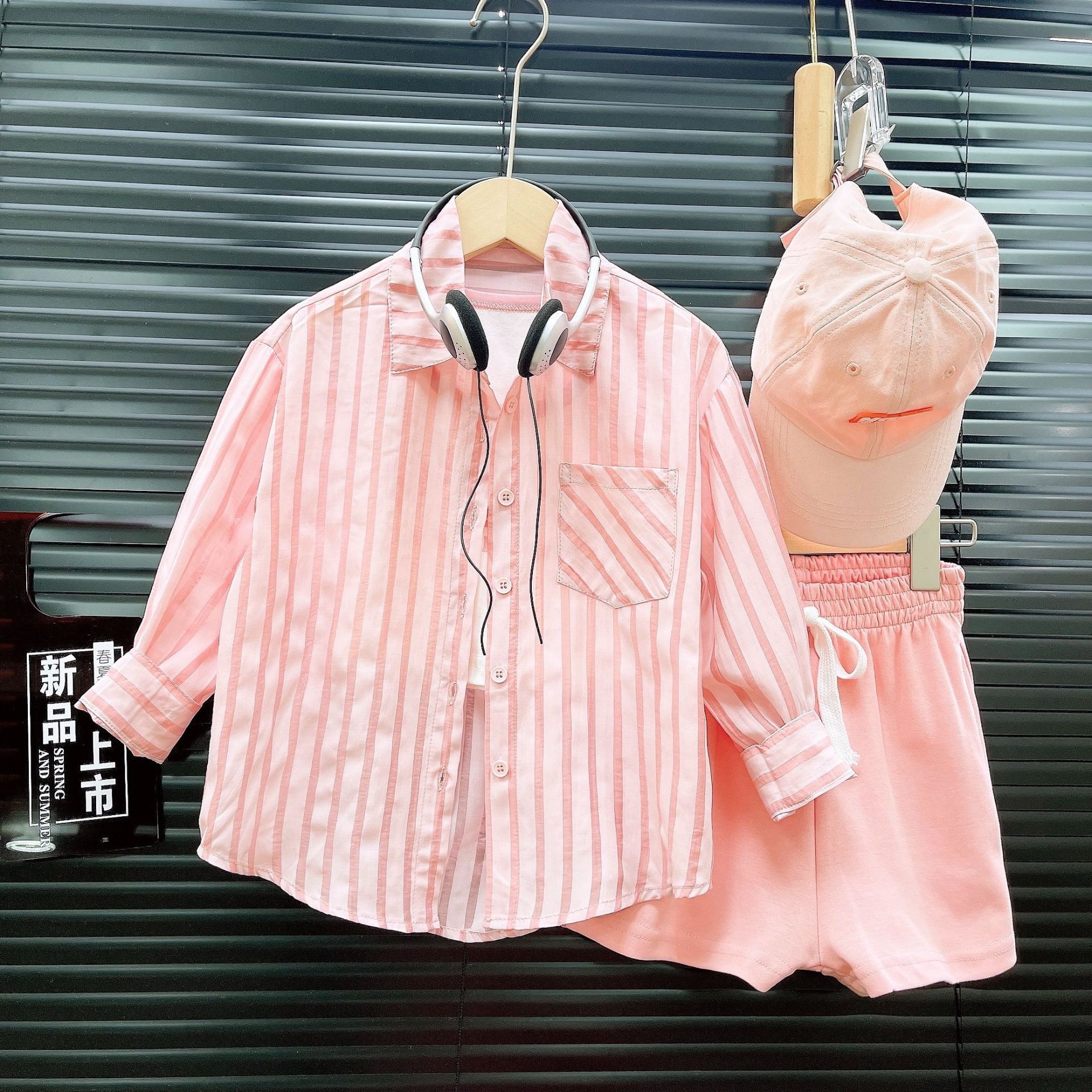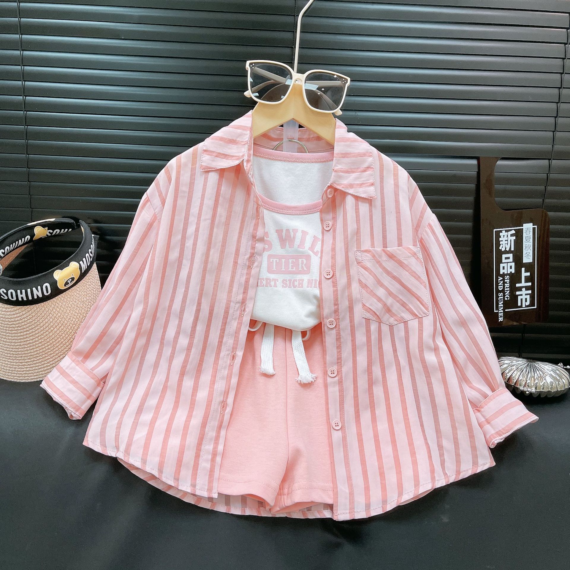 24032 ガールズサマースーツ日焼け止めシャツプラスベストショーツスリーピースガールズファッションサマースーツ