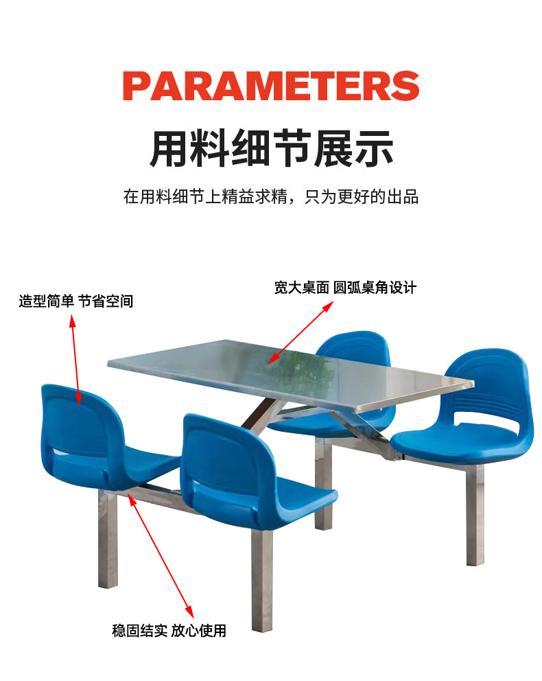 食堂一体型ファーストフードテーブルと椅子、学校食堂ダイニングテーブルと椅子、従業員食堂エリアレストラン、4人用一体型ダイニングテーブルと椅子