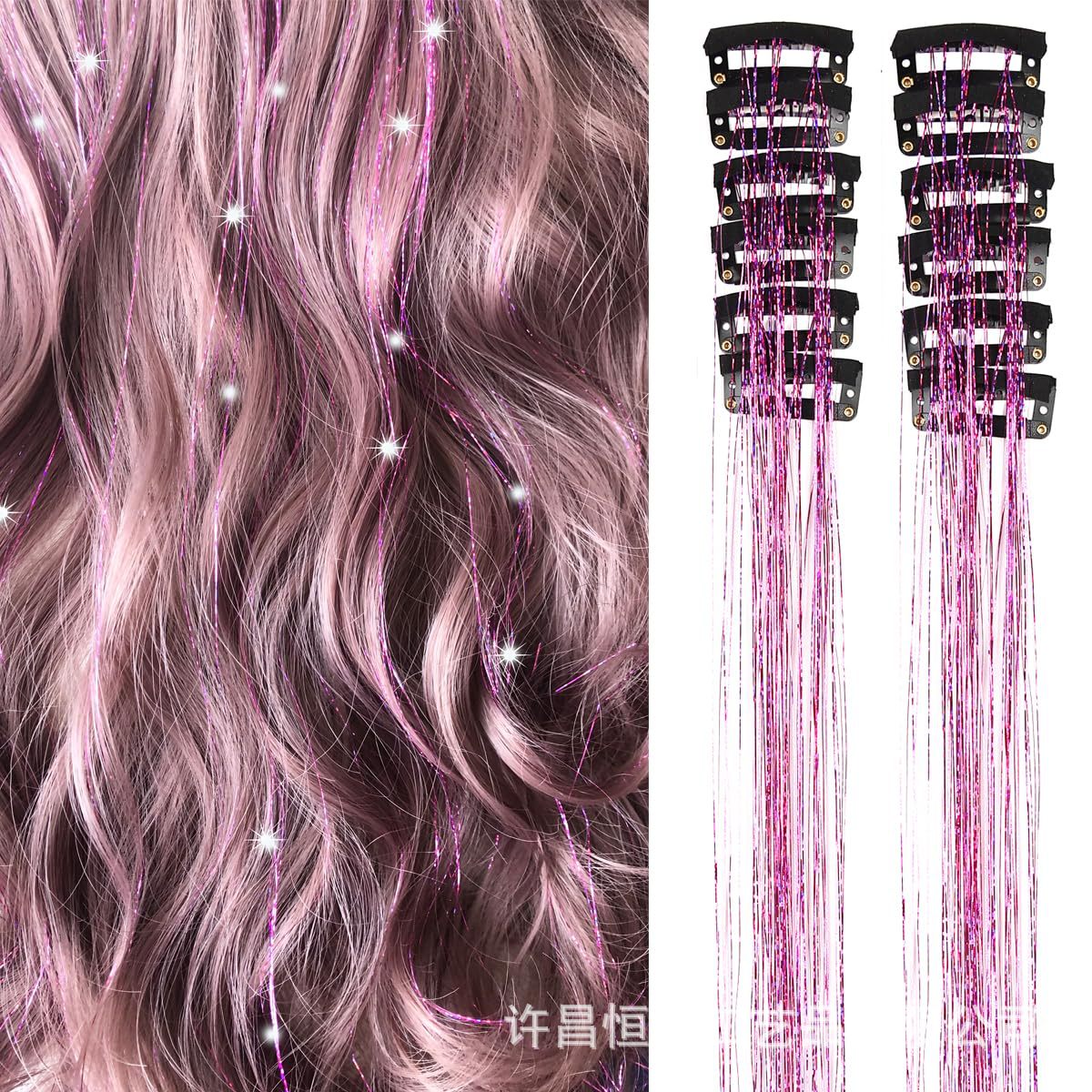 アマゾンtinsel hair国境を越えた欧米のかつらには痕跡のないレーザー糸6枚入りの七色のクリップがついている