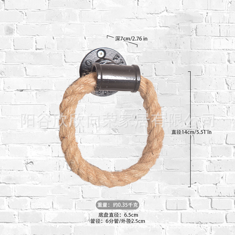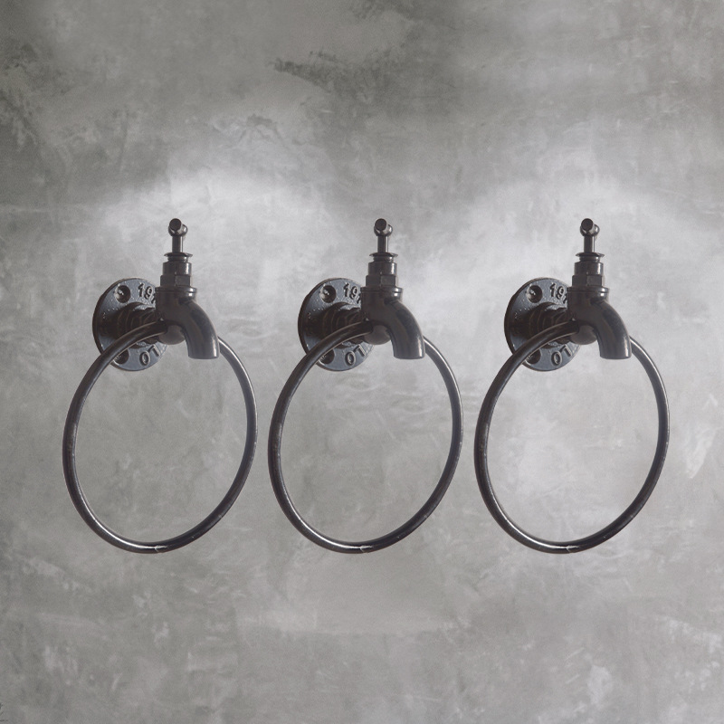 バスルームキッチン鉄芸蛇口水道管パイプ壁掛け式タオルリング田舎工業スタイル黒色金属