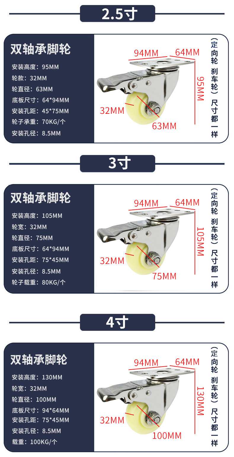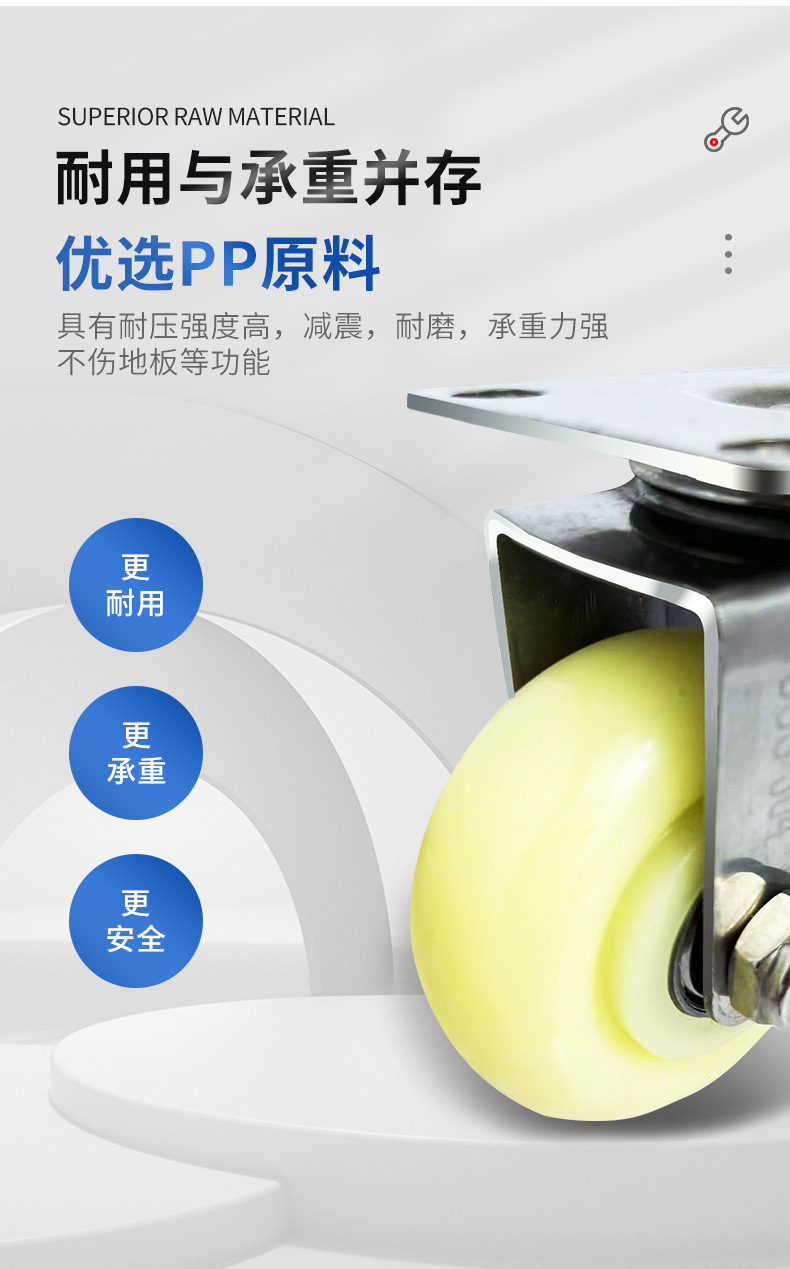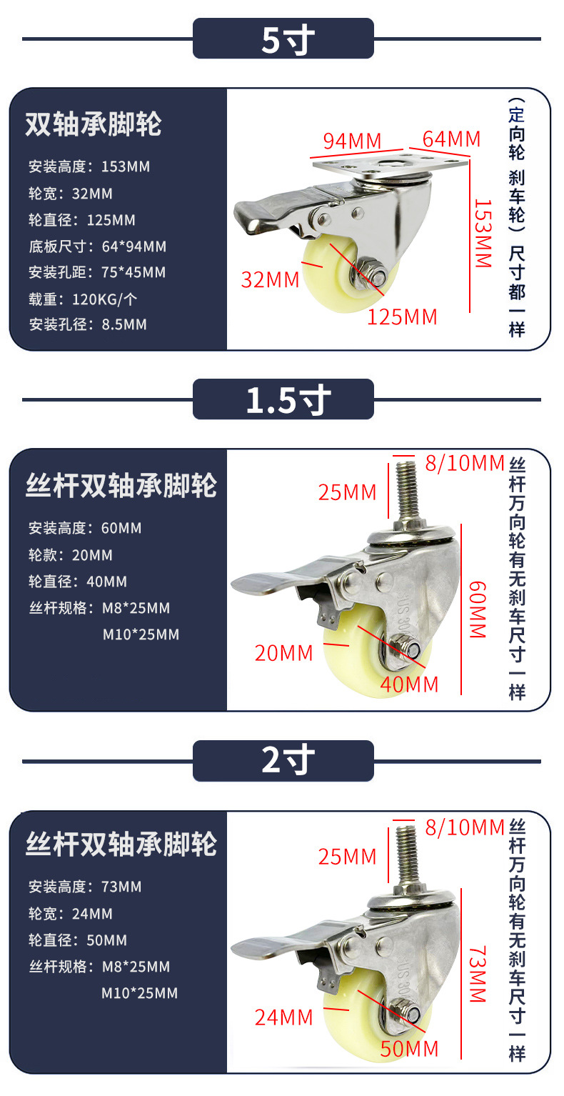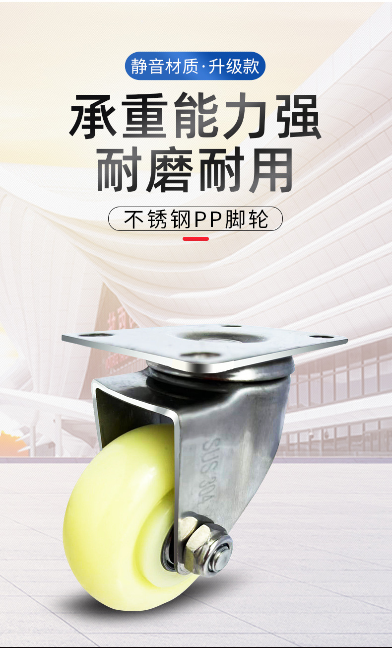 9】中型304ステンレス白PPキャスター 1.5inch 2inch 2.5inch 3inch 4inch 5inch
