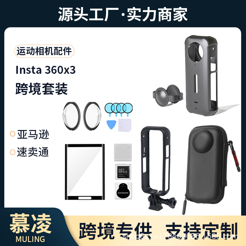 影石ins 360x3鋼化膜粘着式保護鏡膜シリコンカバーウサギ籠枠収納バッグ部品