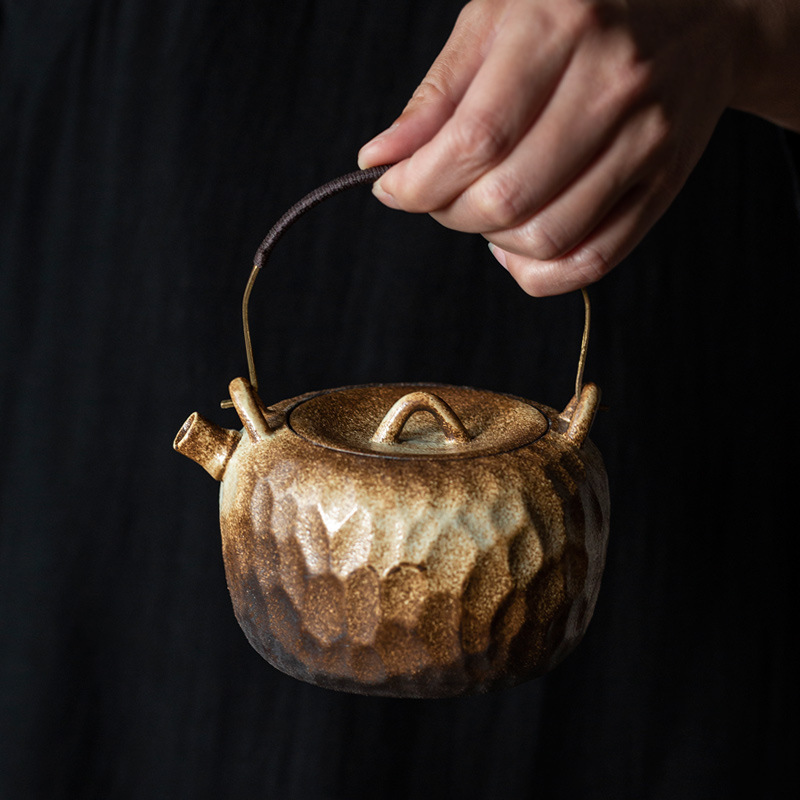 岩彩古陶ハンマー紋提梁壺オフィス茶器家庭用シングルポット茶やかんオフィス工夫茶器