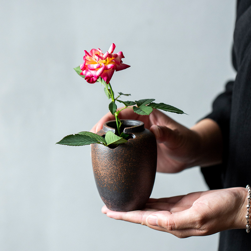 陶怡レトロ粗陶花器窯変岩苔焼花瓶客間書斎禅意生け花器花芸置物