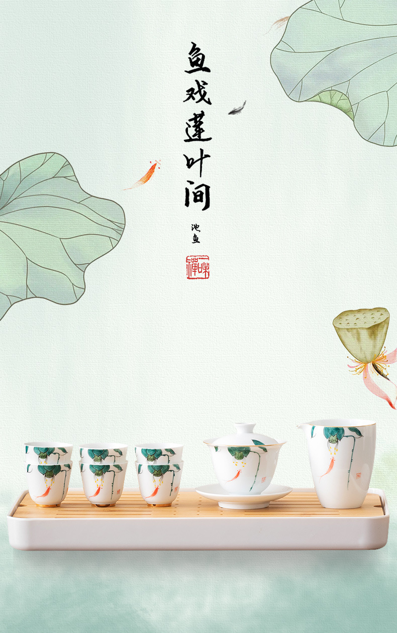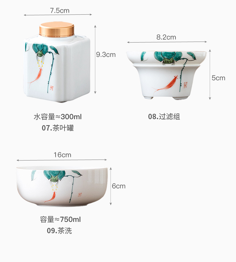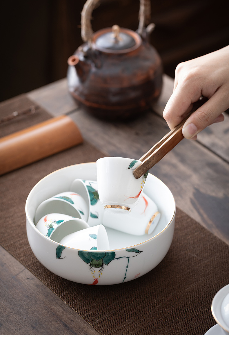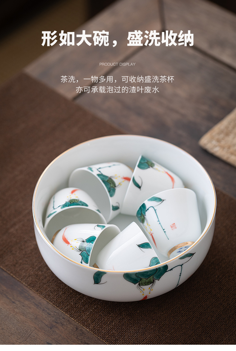 手描きの白い磁器の魚の劇の蓮の蓬のお茶はお茶のかすの筒の桶の大きいサイズの家庭用の杯のお茶の部品の陶磁器の水を洗って植木鉢を育てます。