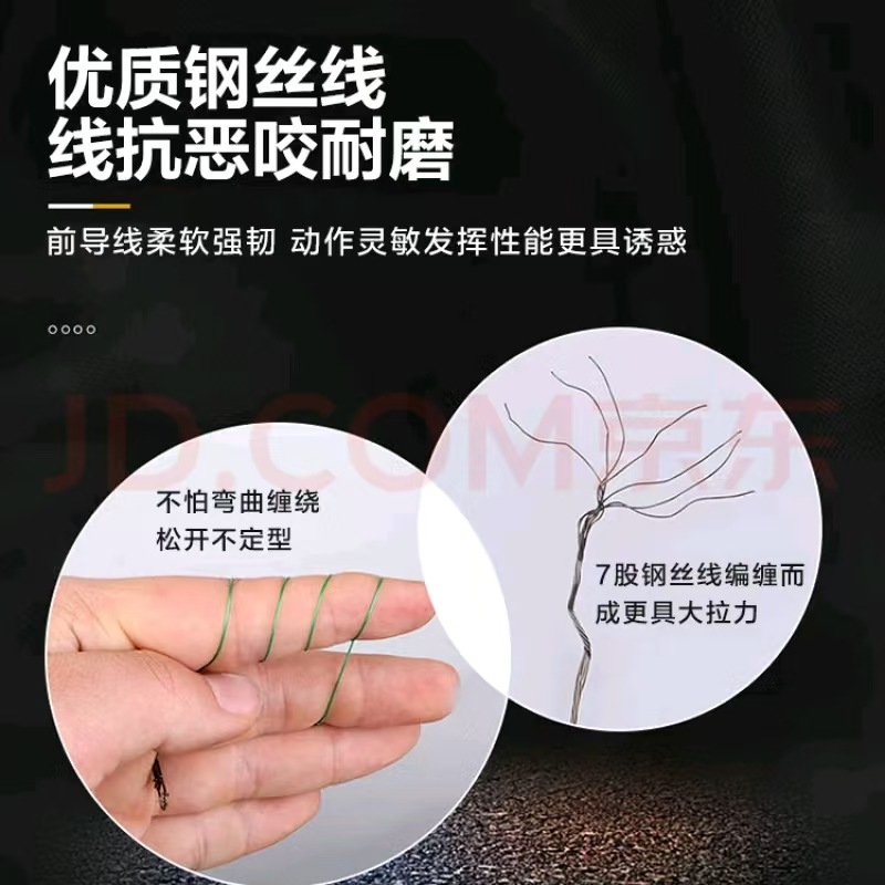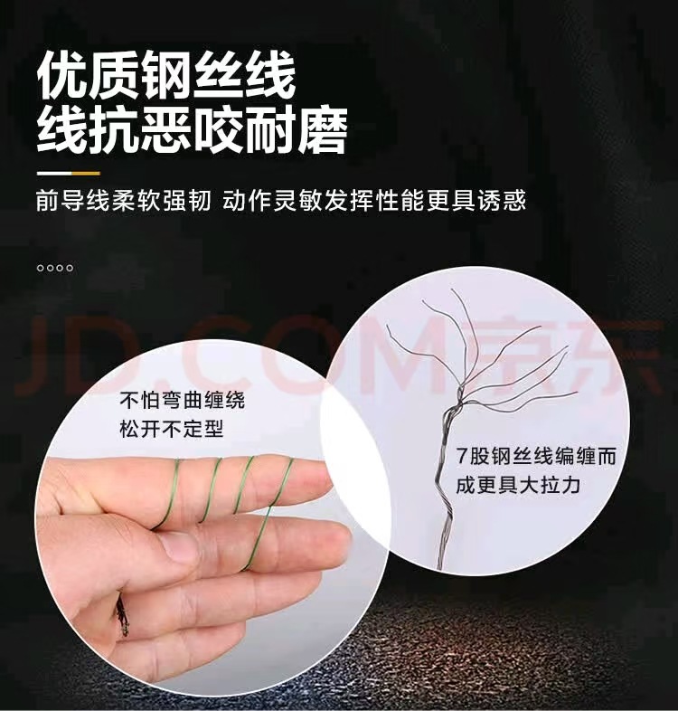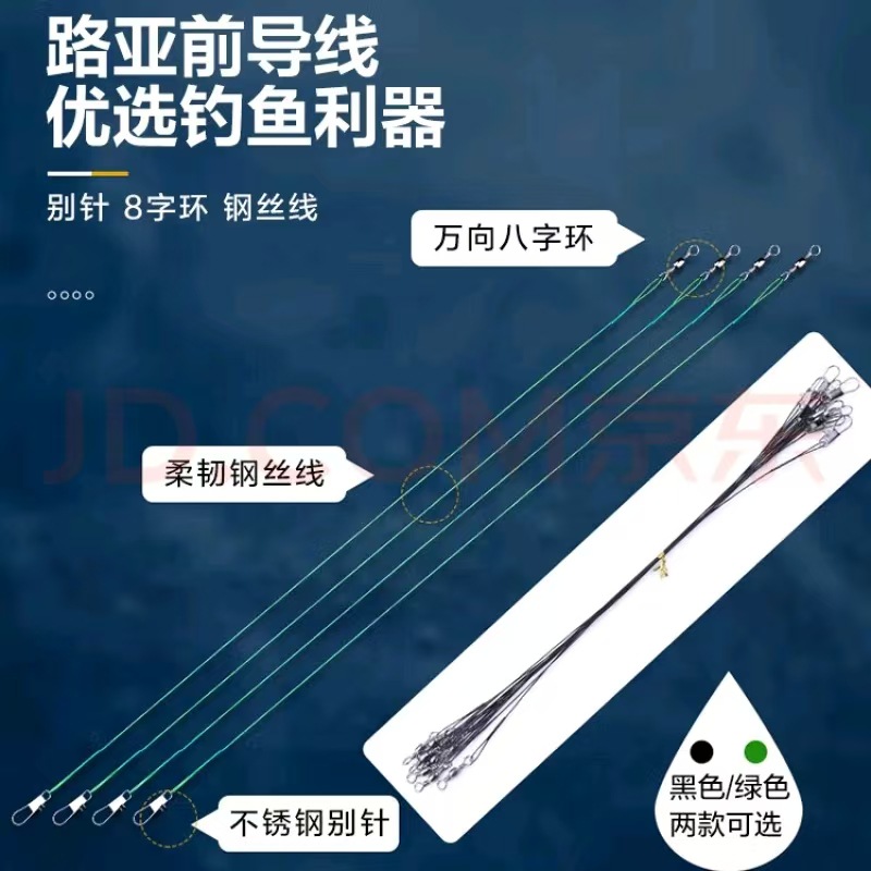路亚前导线中使用钢丝线主要用于应对牙齿锋利的鱼种,如海鲈、带鱼等,以防止咬断钓线。以下是关于钢丝线的详细介绍:
