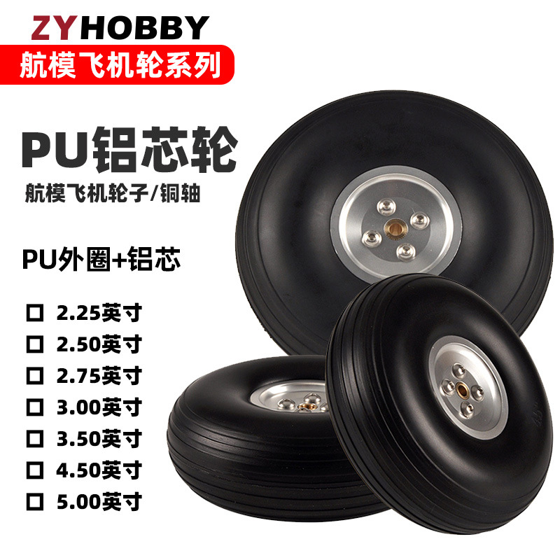 航型飛輪子固定翼離着陸機pu中実タイヤ銀色アルミ芯輪2.75 ~ 5インチ輪