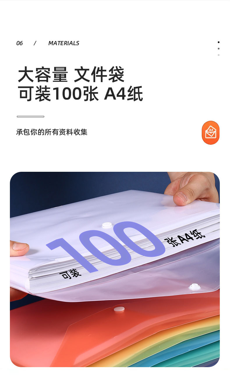 亚马逊纯色加厚资料袋A4多颜色文具收纳大容量批发pp按扣式文件袋