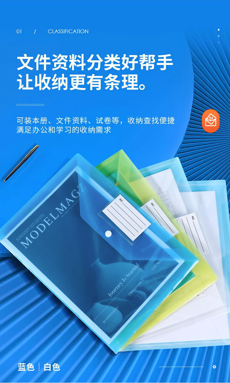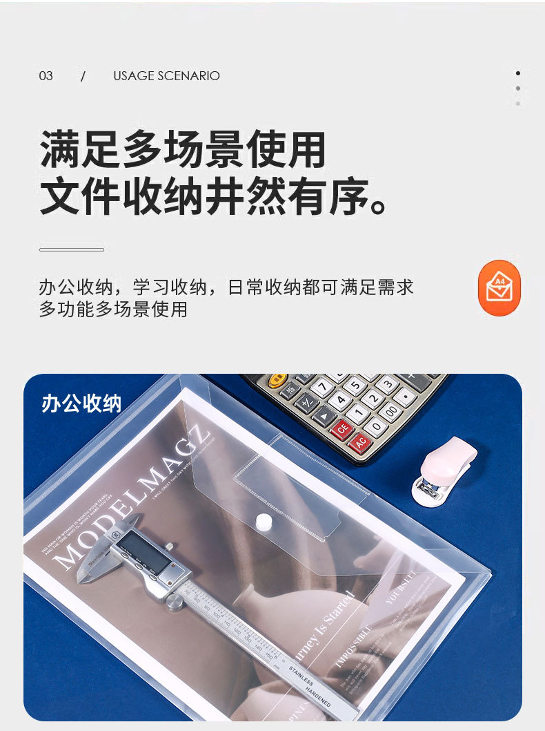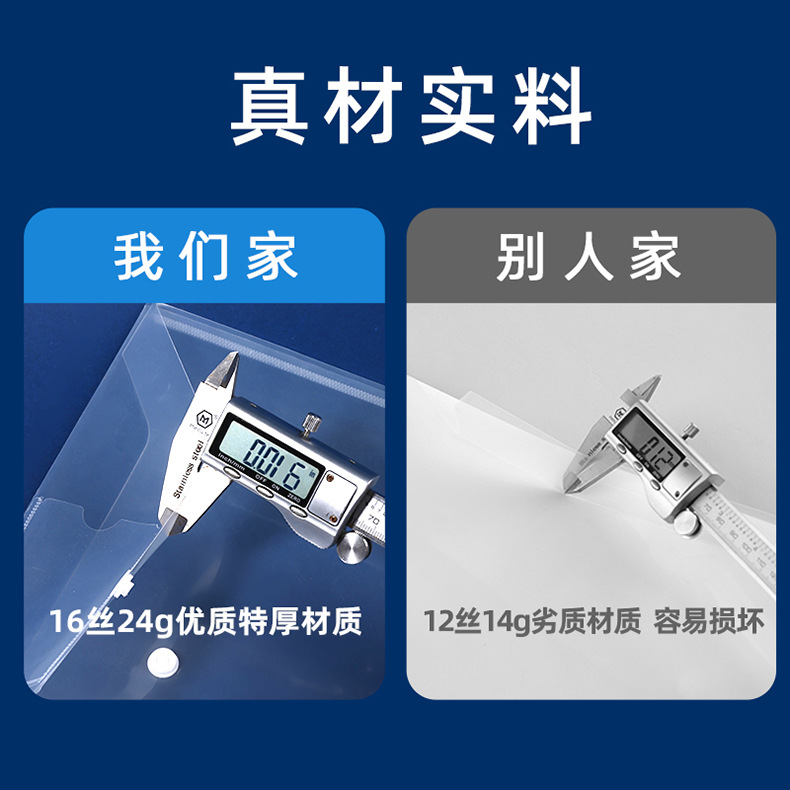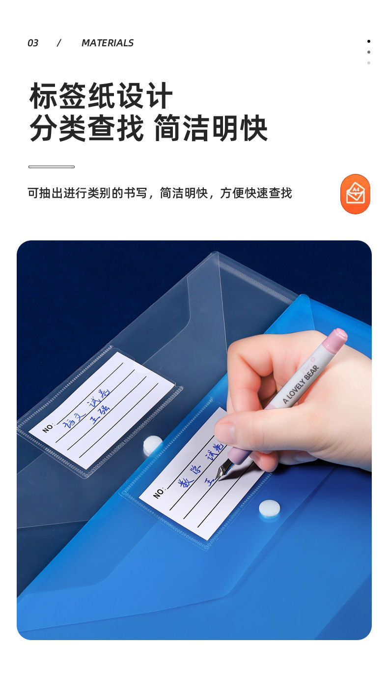 跨境A4透明按扣式塑料收纳袋资料档案PP标签名片文件袋办公档案袋