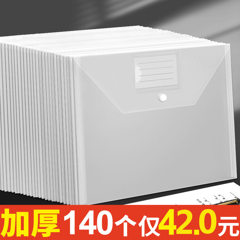 跨境加厚a4纽扣袋按扣式文件袋带标签透明办公塑料资料收纳档案袋