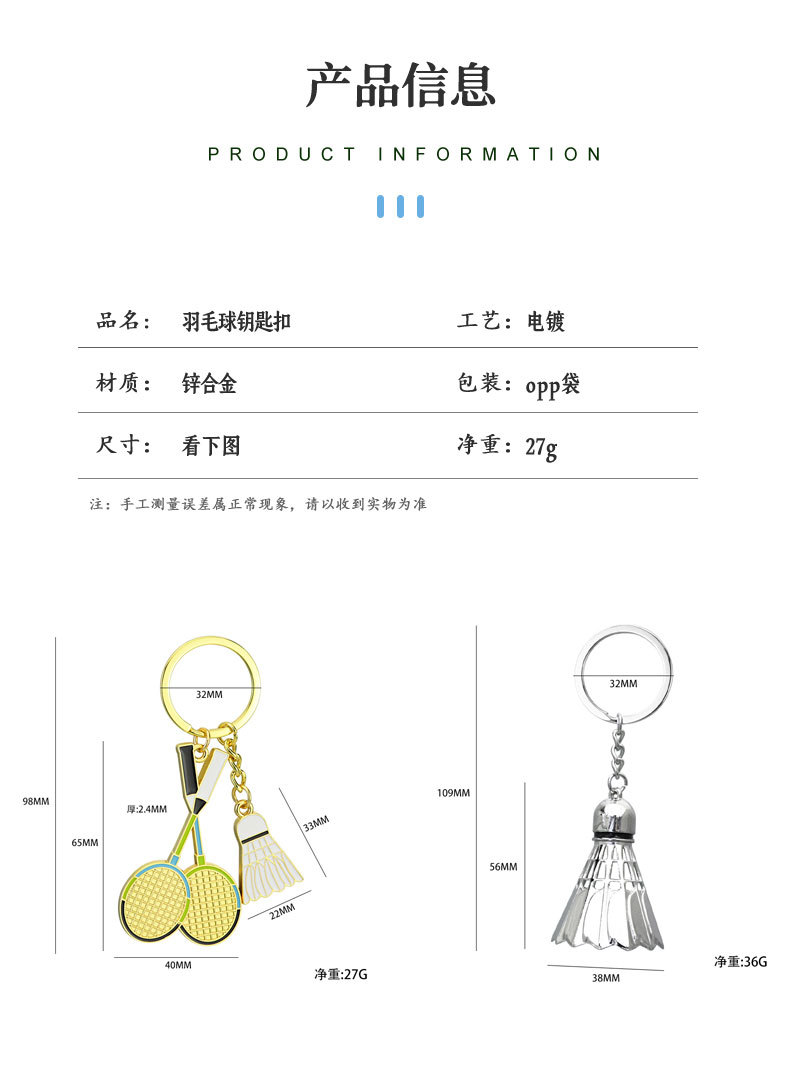 クリエイティブシミュレーション立体バドミントンキーホルダーテニスラケットスポーツキーホルダー卓球キーペンダント小プレゼント