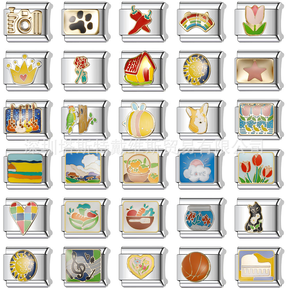 田園風シリーズ イタリア製モジュールブレスレット 9MM ステンレス製 クロスボーダー新作 ニッチDIY組み合わせブレスレット