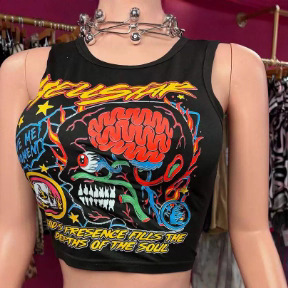 24032713欧米ファッション開襟プリントアルファベット小ベスト坑条アルファベットプリントファッション婦人服