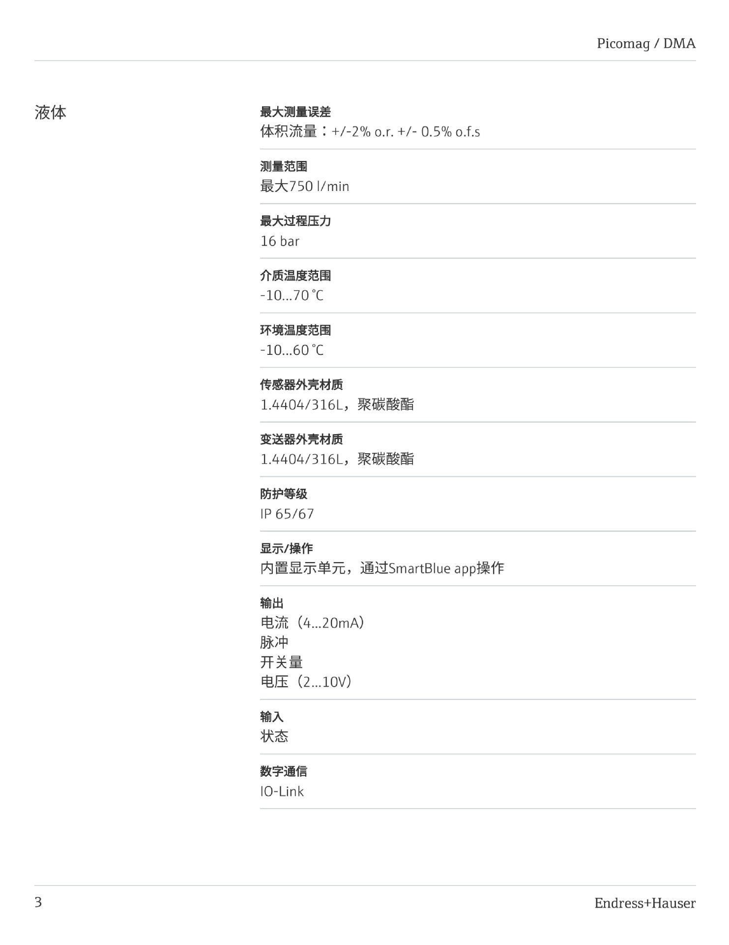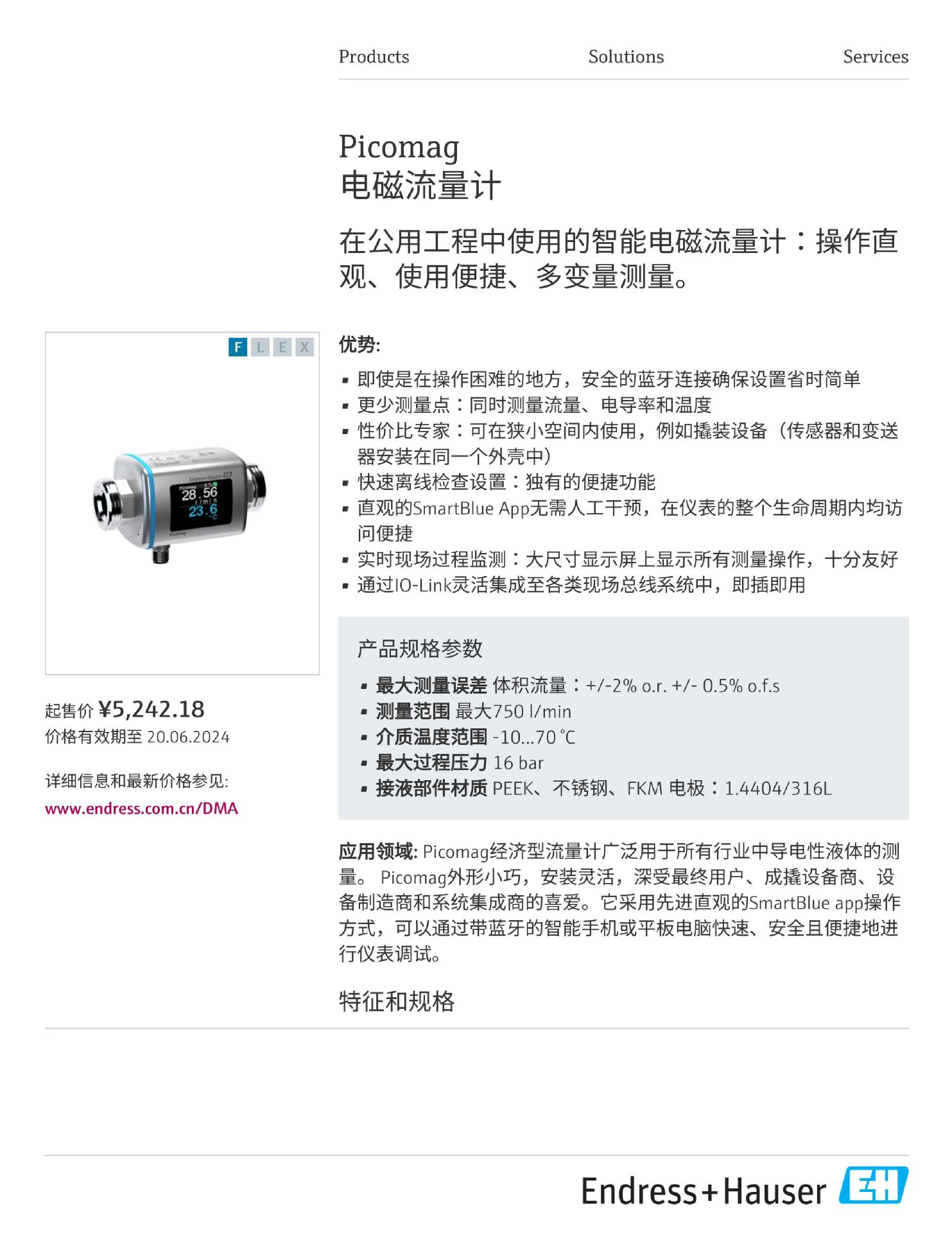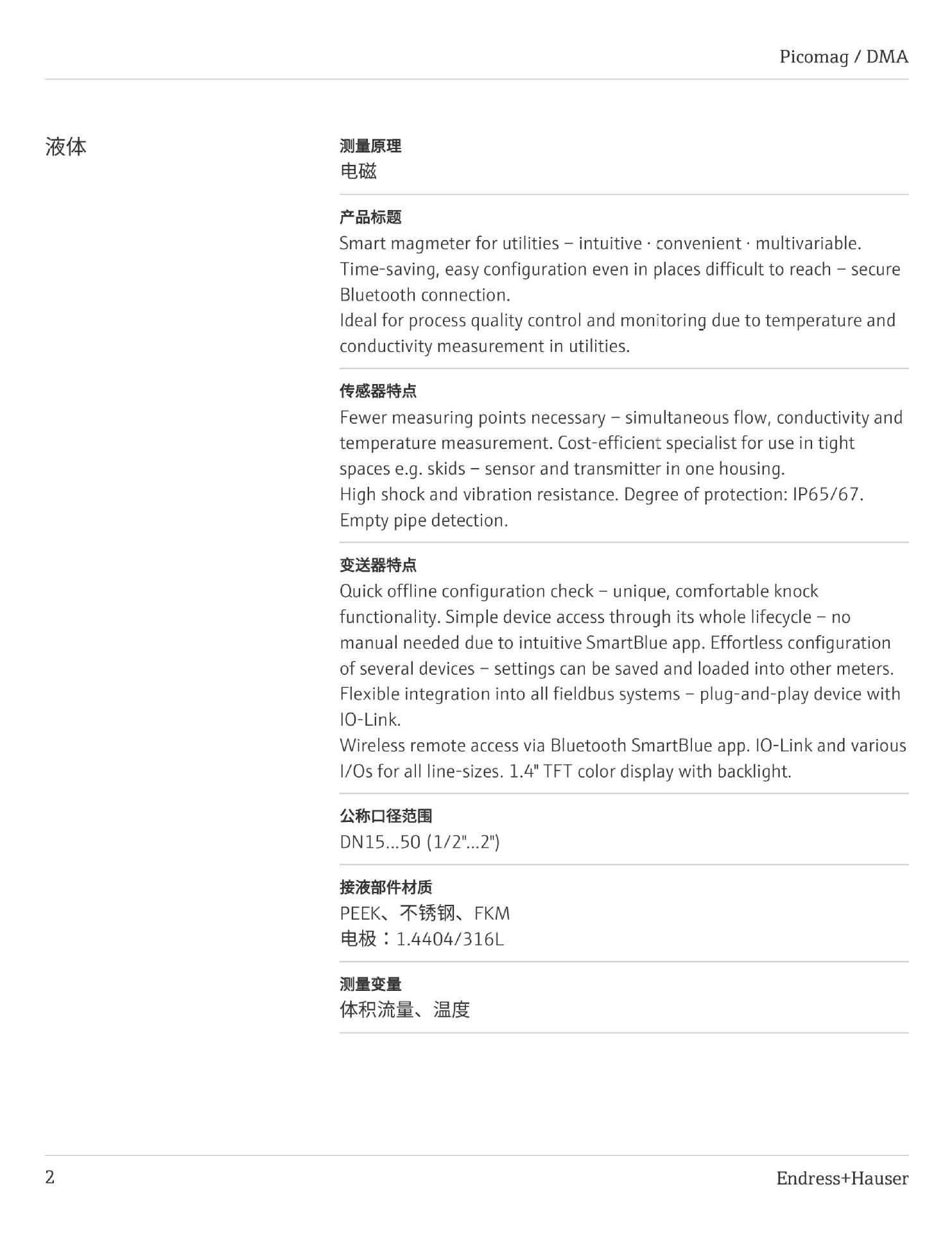 エンドレスHauser液体流量計Picomagシリーズ導電性液体流量計